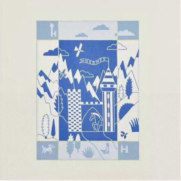 AVALON EPOPEE BLANKET 140 CM IN COBALT BLUE WOOL AND CASHMERE 415188