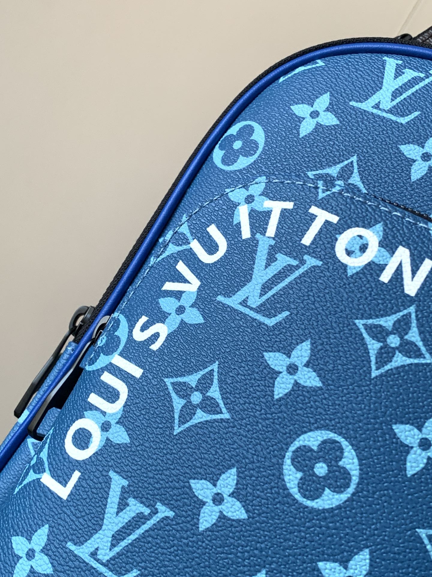 AVENUE SLINGBAG 31 IN BLUE AND BROWN TAIGA LEATHER