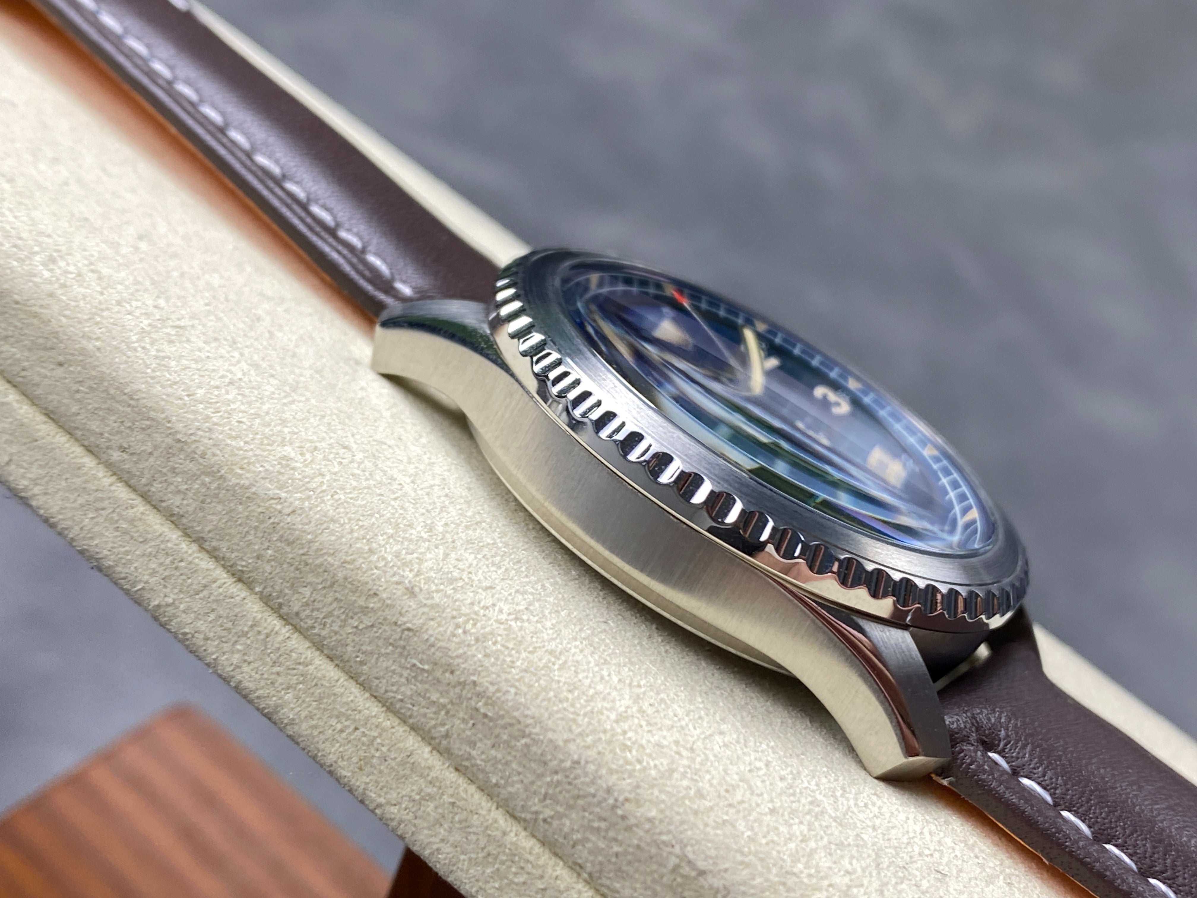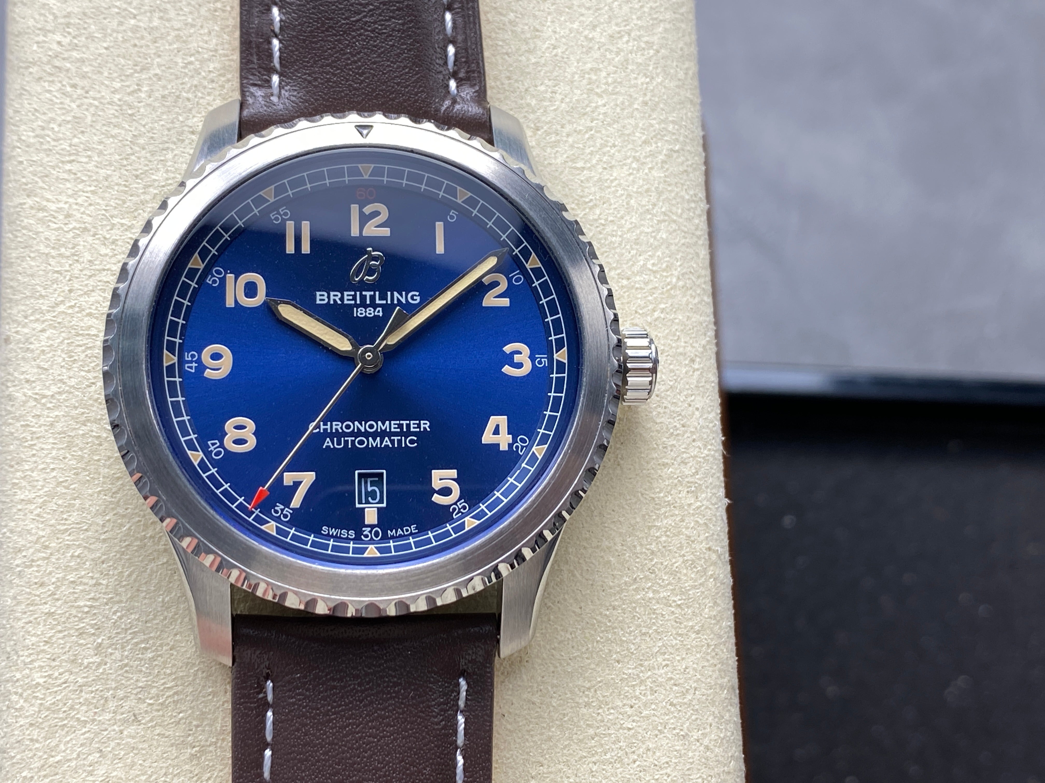 AVIATOR 8 AUTOMATIC STEEL CASE BLUE DIAL BROWN CALFSKIN STRAP