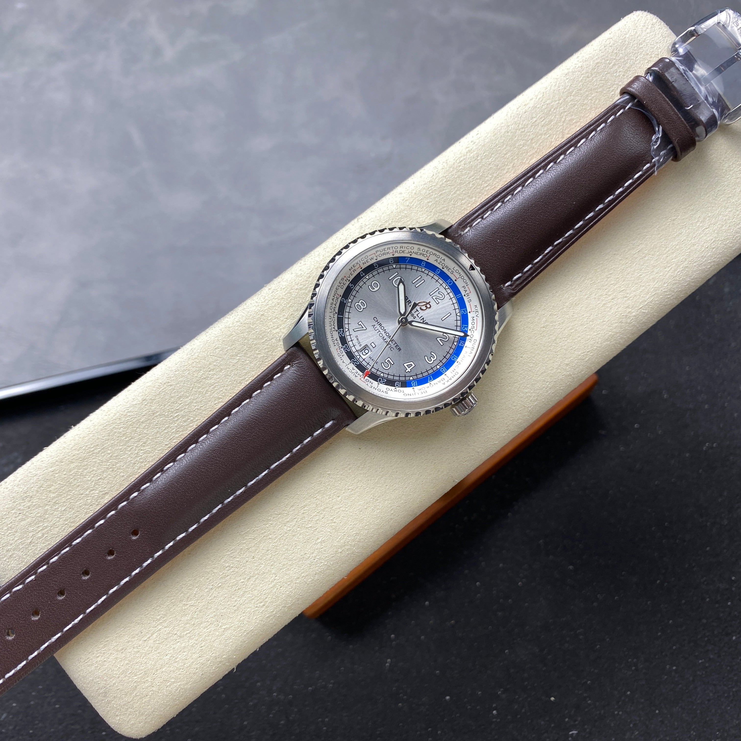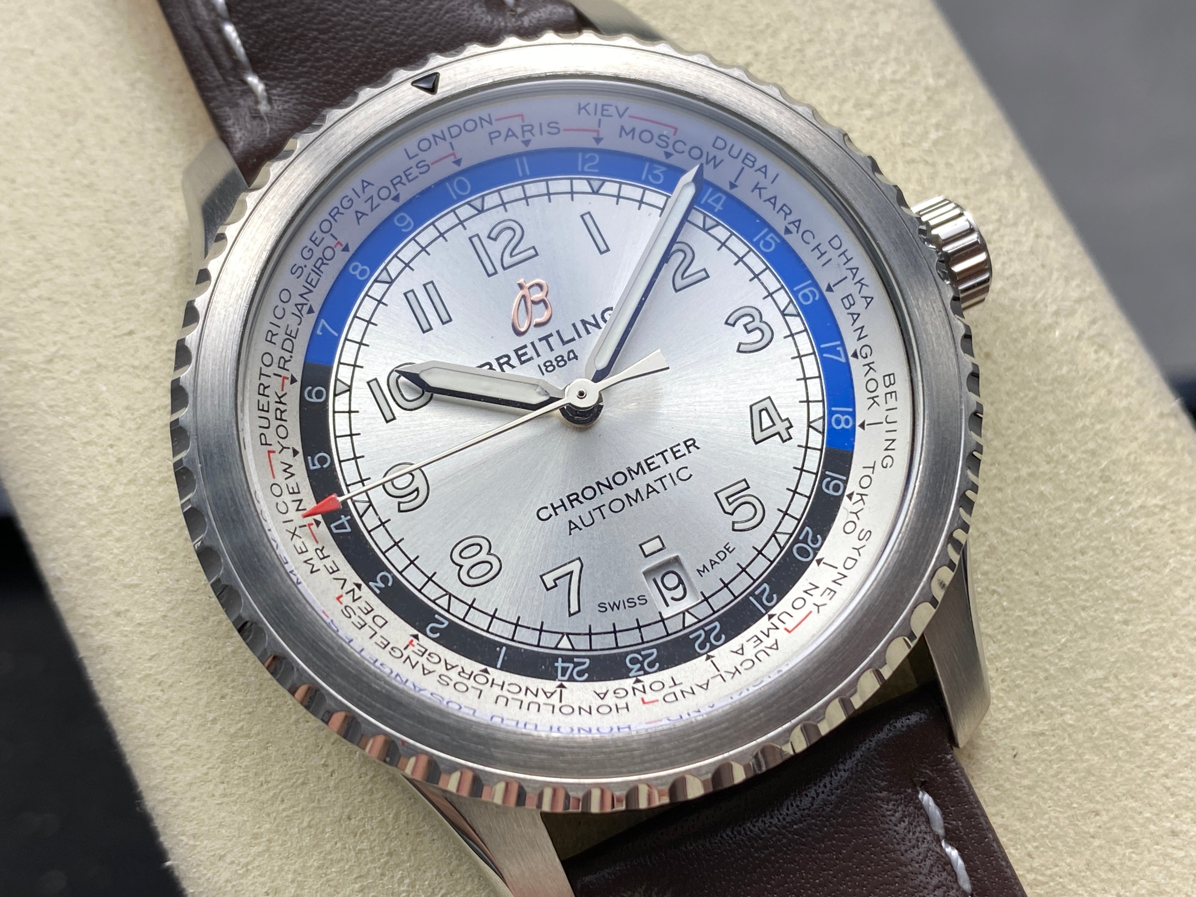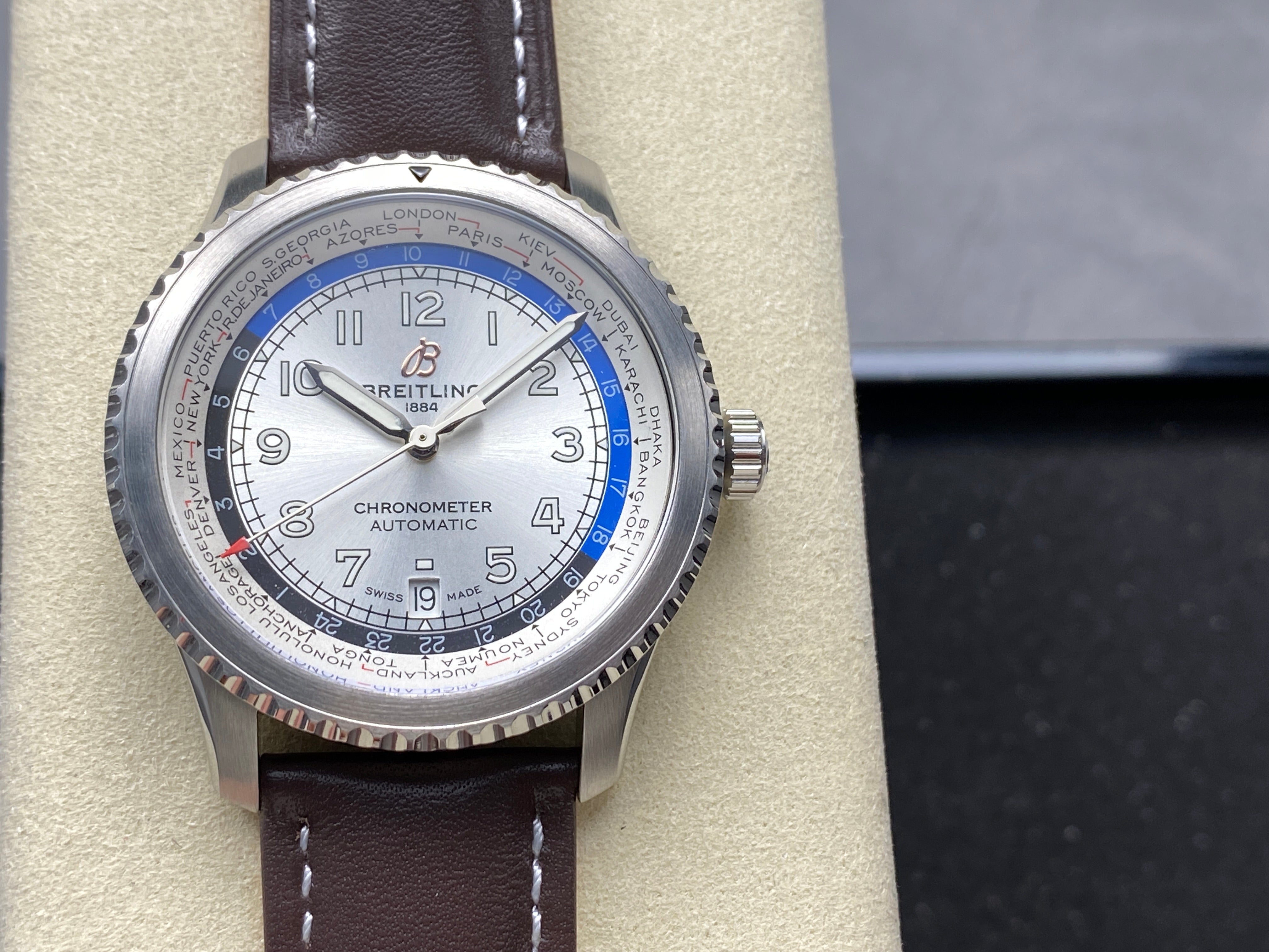 AVIATOR 8 AUTOMATIC STEEL CASE SILVER MIX BLACK BLUE DIAL BROWN CALFSKIN STRAP