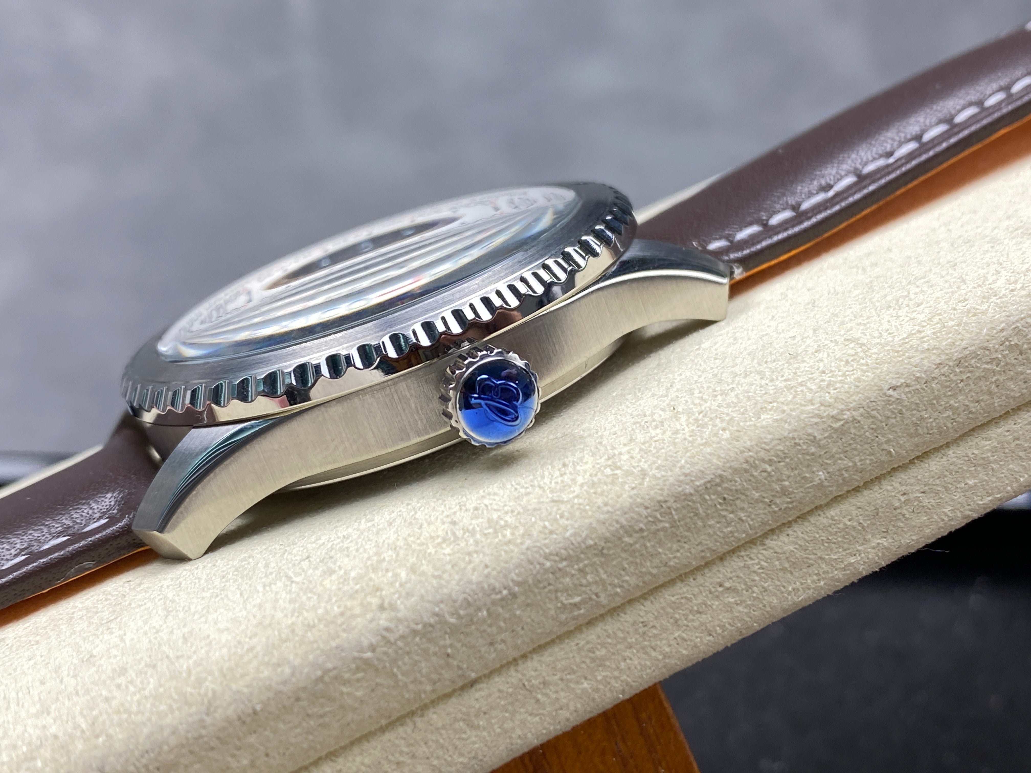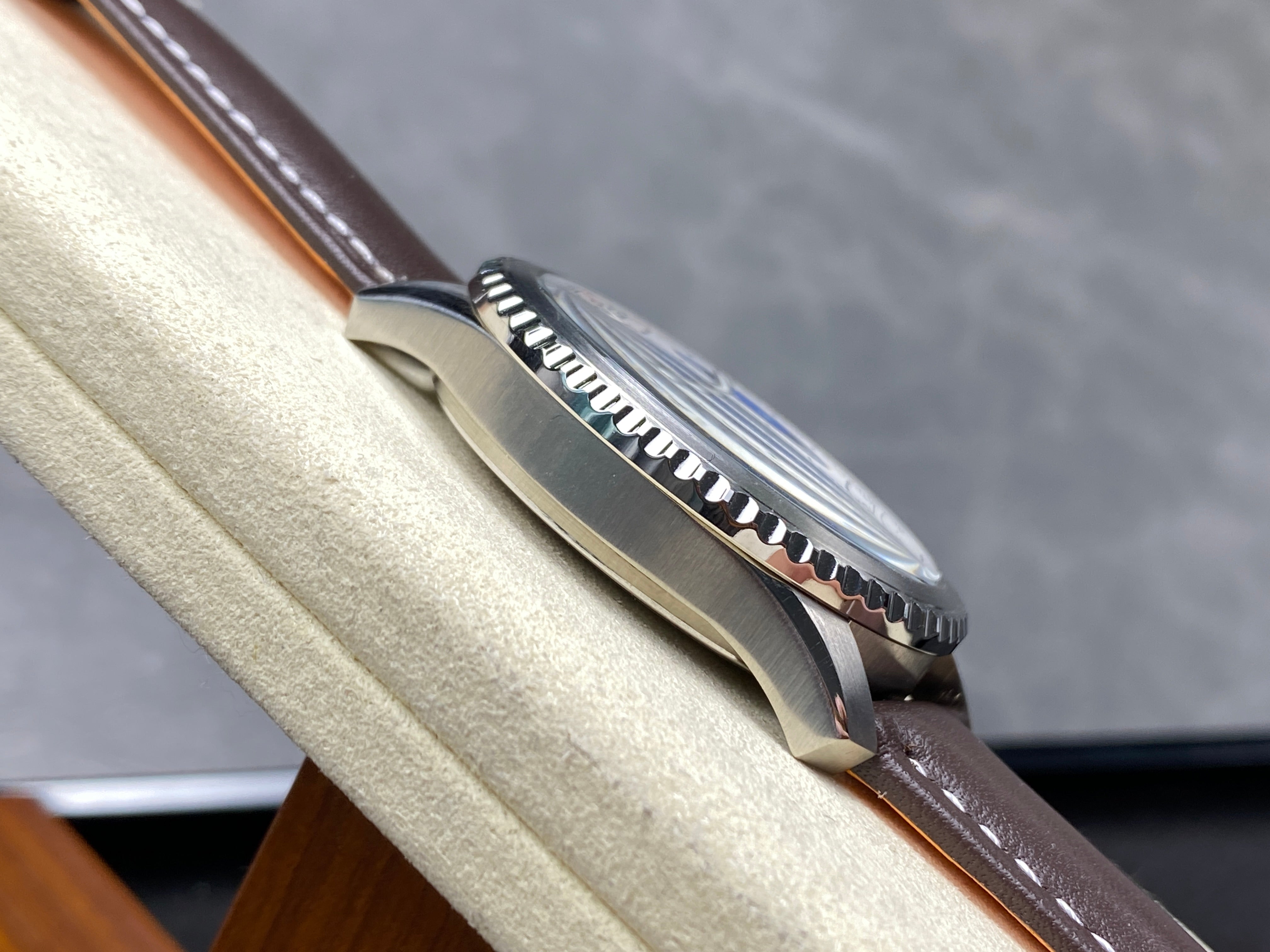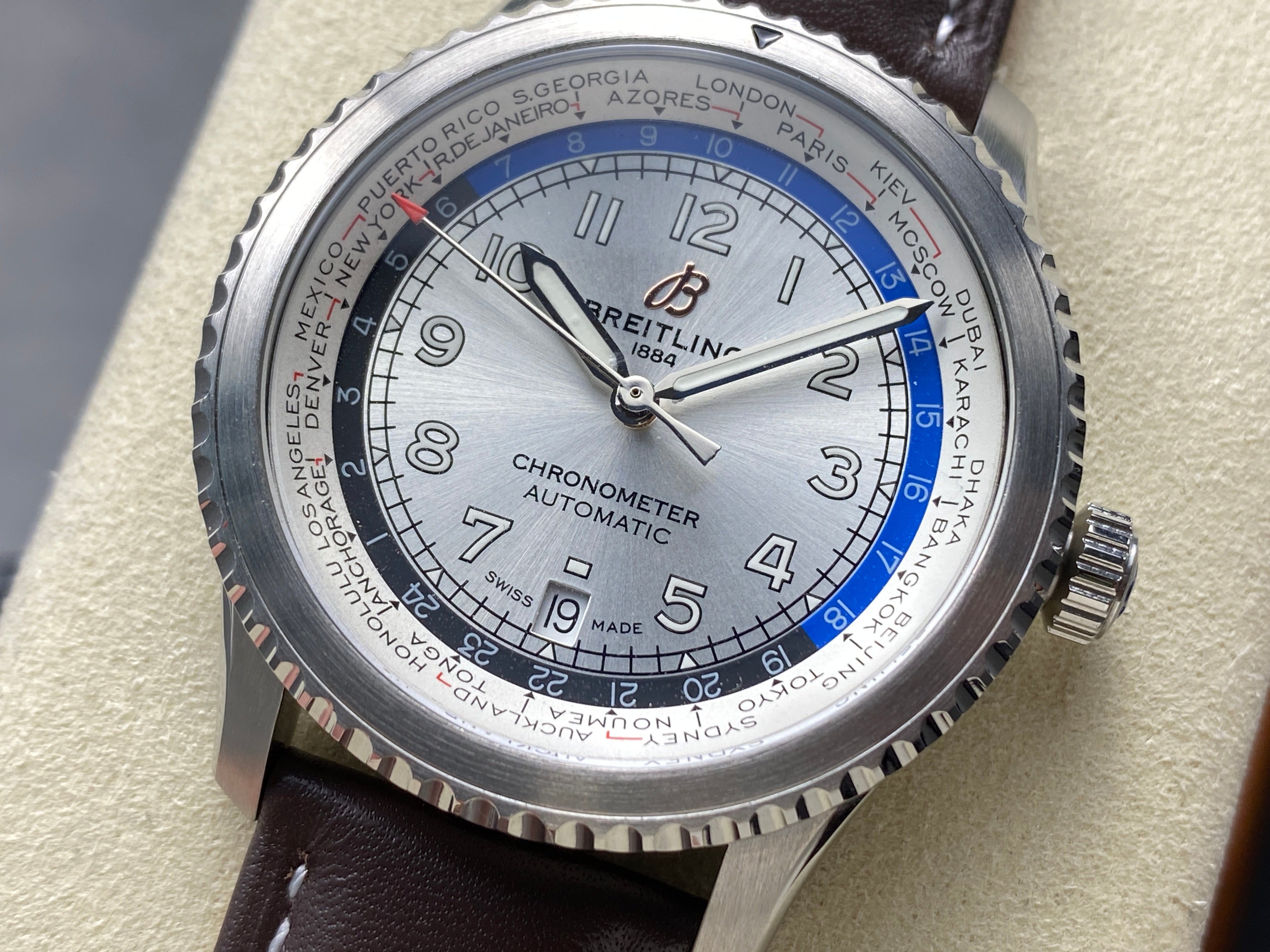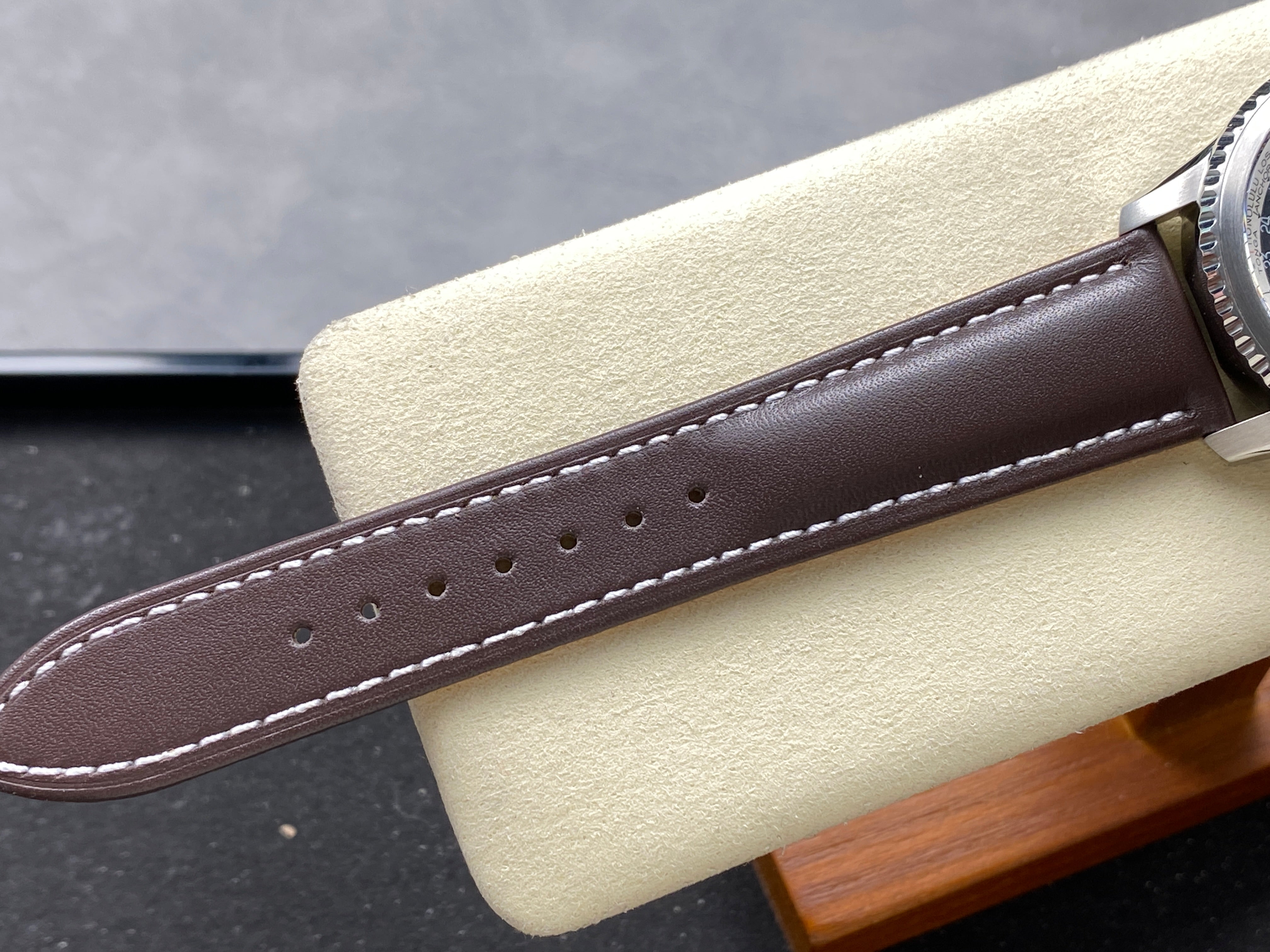 AVIATOR 8 AUTOMATIC STEEL CASE SILVER MIX BLACK BLUE DIAL BROWN CALFSKIN STRAP