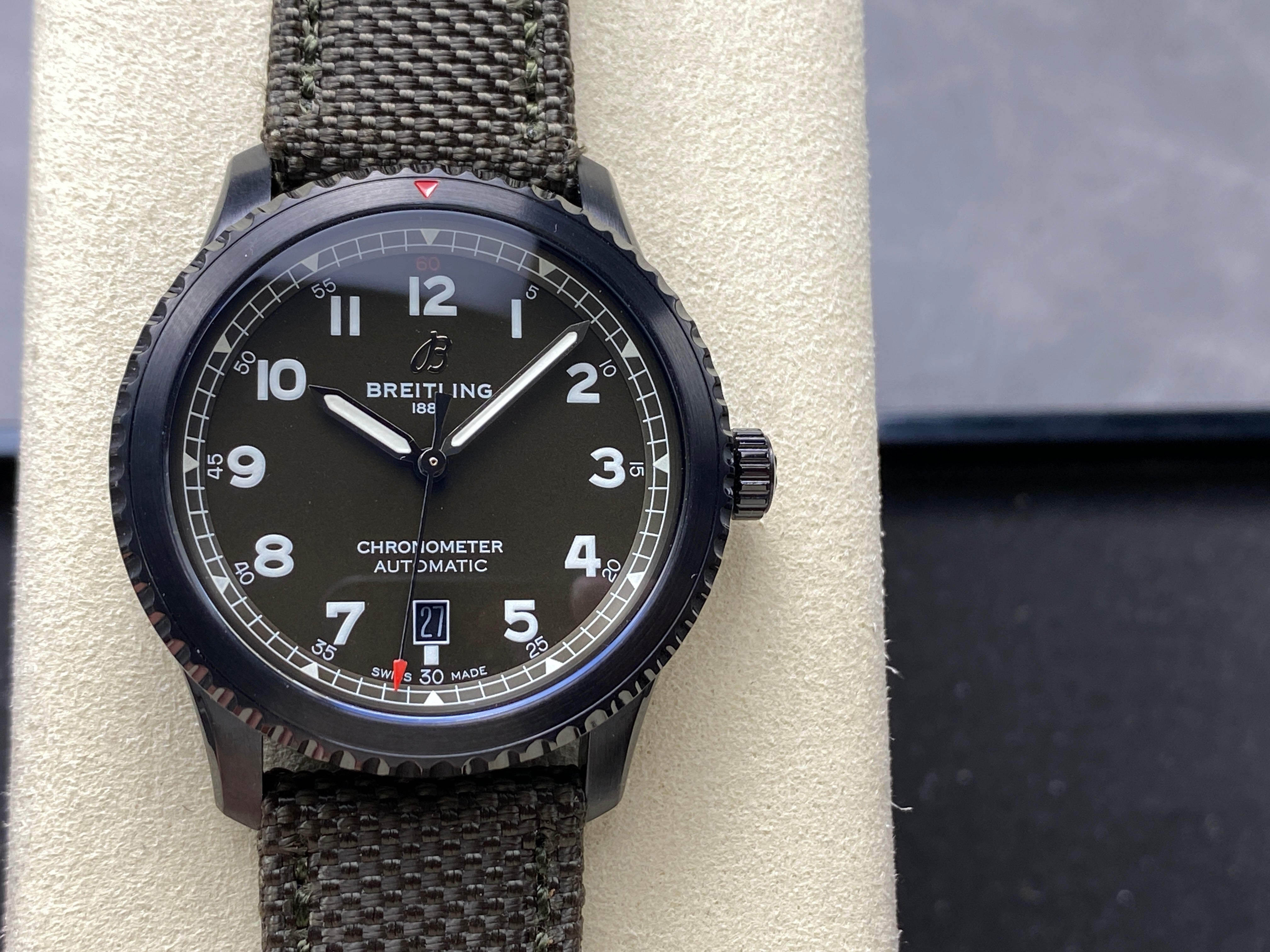 AVIATOR 8 CURTISS AUTOMATIC STEEL CASE KHAKI GREEN NYLON STRAP