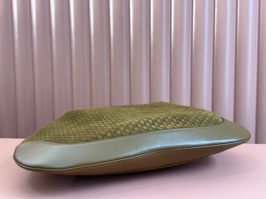 B LARGE SHOULDER BAG 49 IN SEAWEED GREEN GG EMBOSSED SUEDE