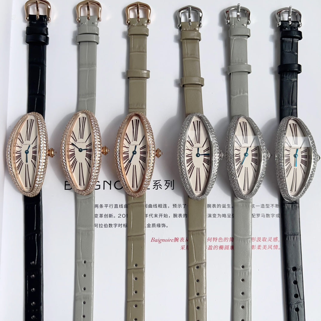 BAIGNOIRE ALLONGÉE WATCH ROSE GOLD CASE WITH PASTEL GRAY LEATHER STRAP