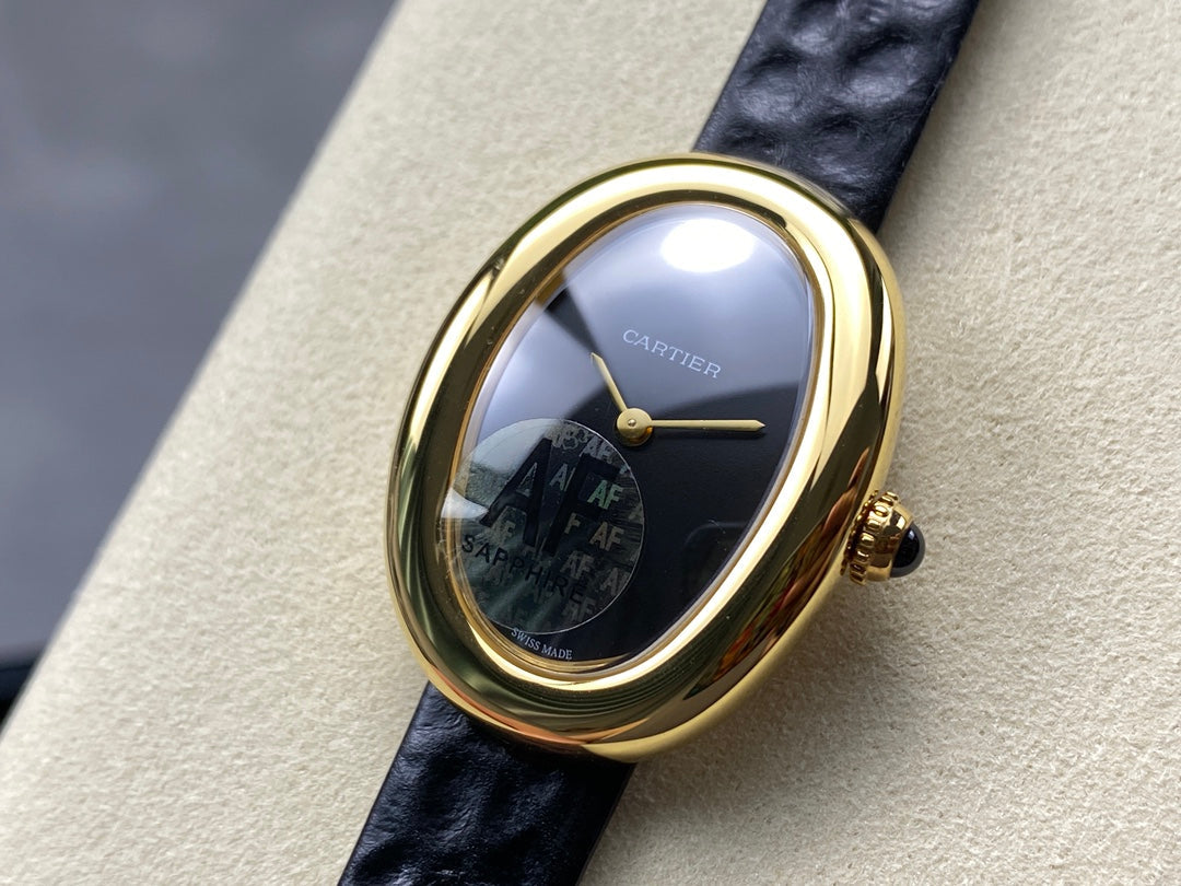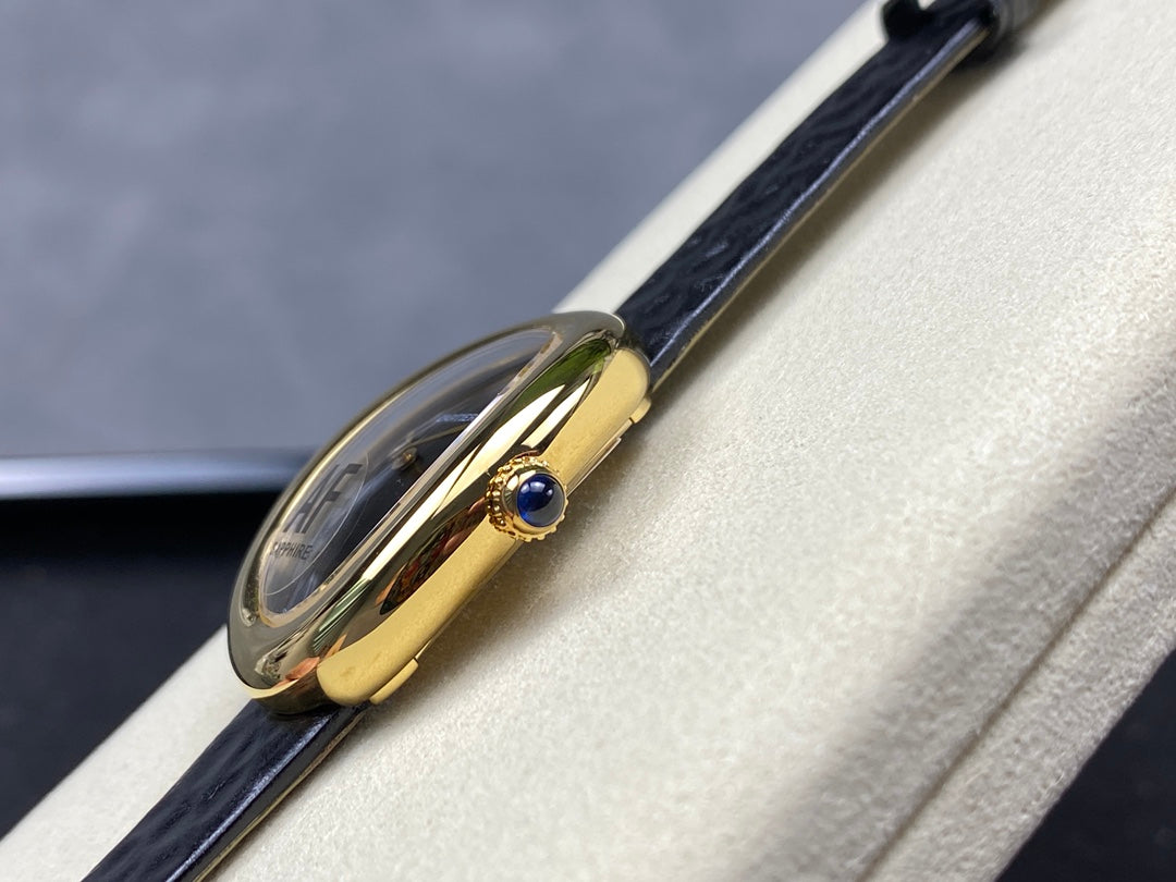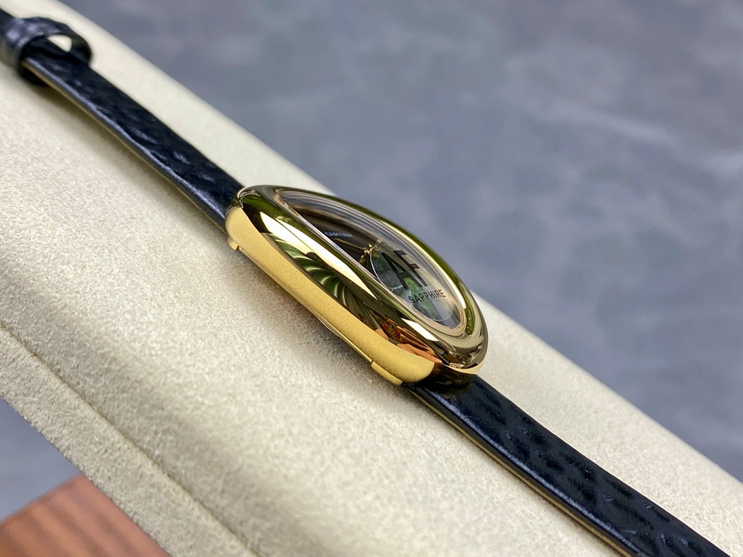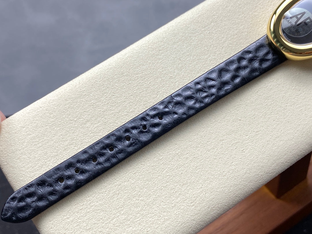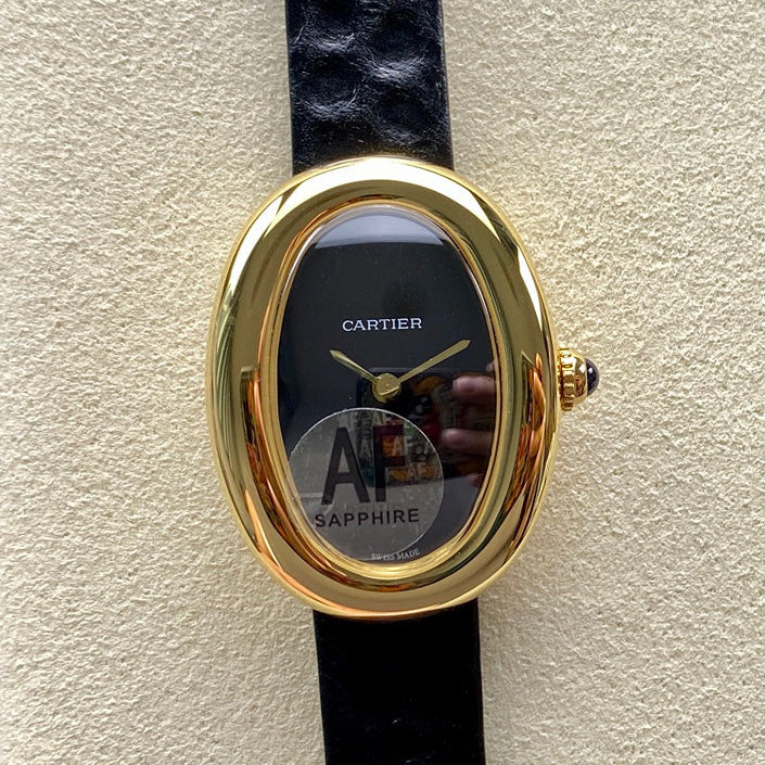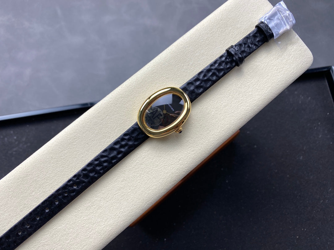 BAIGNOIRE MINI MODEL WATCH GOLD CASE WITH BLACK LEATHER STRAP