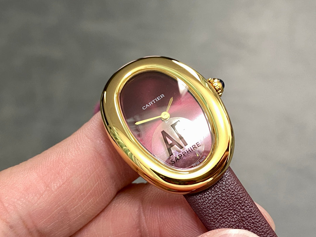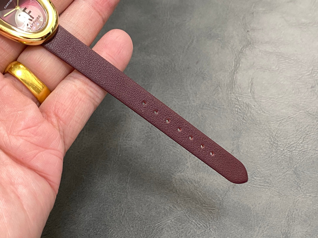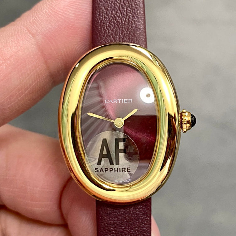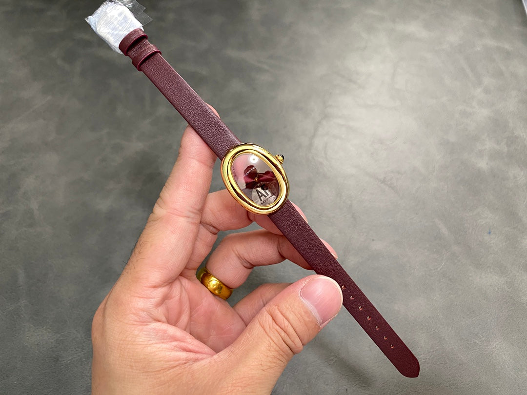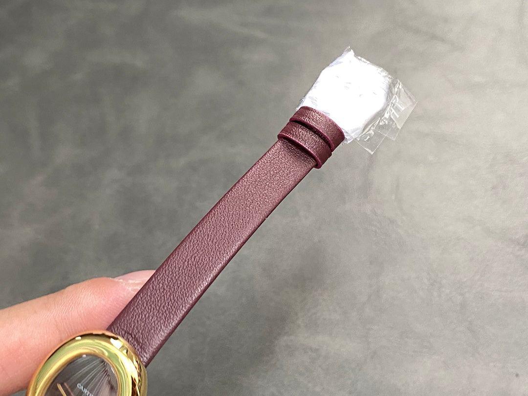 BAIGNOIRE MINI MODEL WATCH GOLD CASE WITH WINE RED LEATHER STRAP