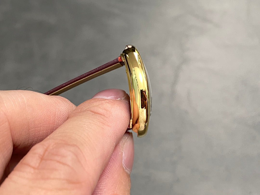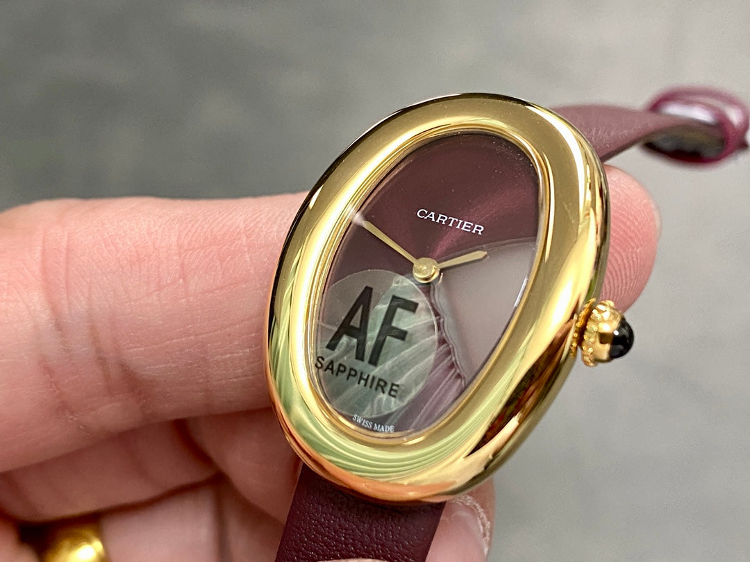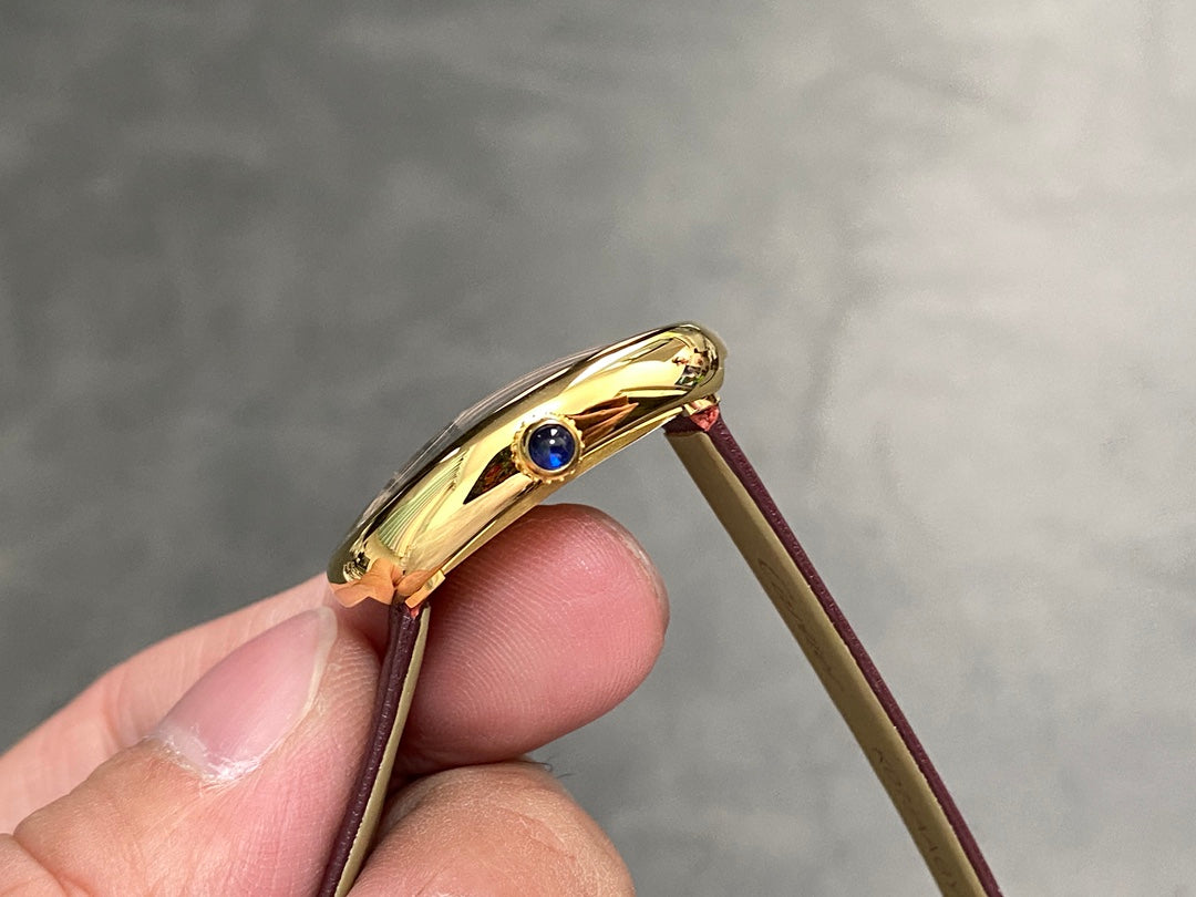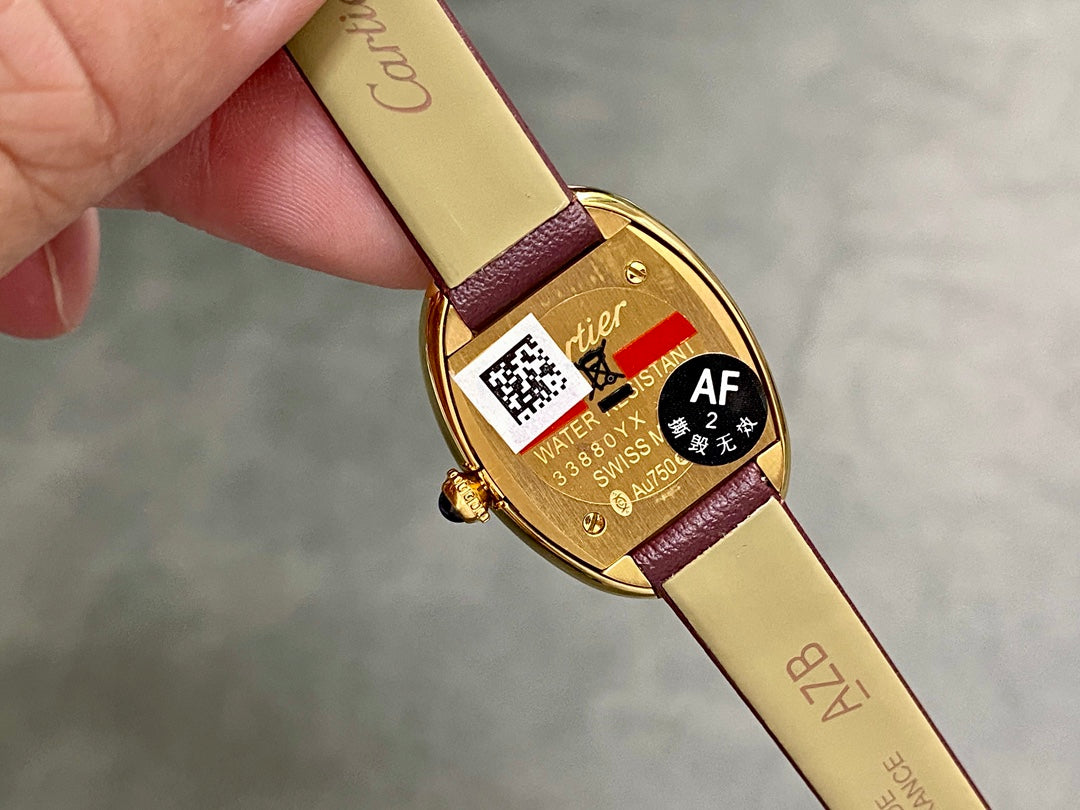 BAIGNOIRE MINI MODEL WATCH GOLD CASE WITH WINE RED LEATHER STRAP