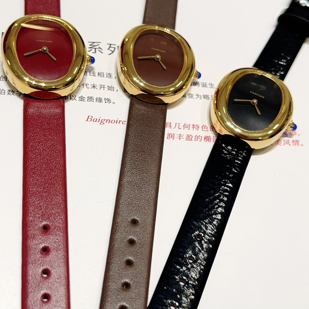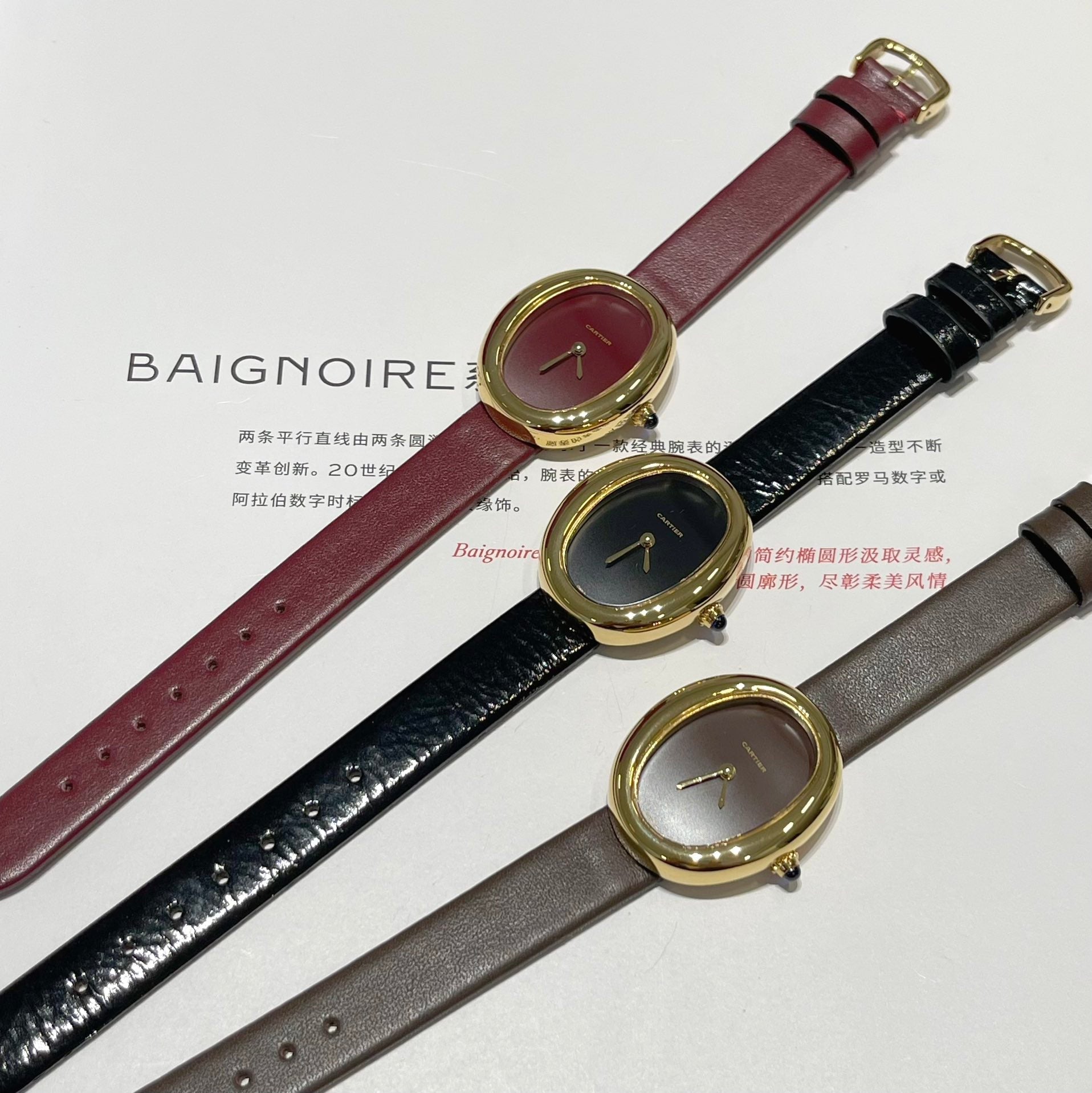 BAIGNOIRE WATCH GOLD CASE AND LEATHER STRAP