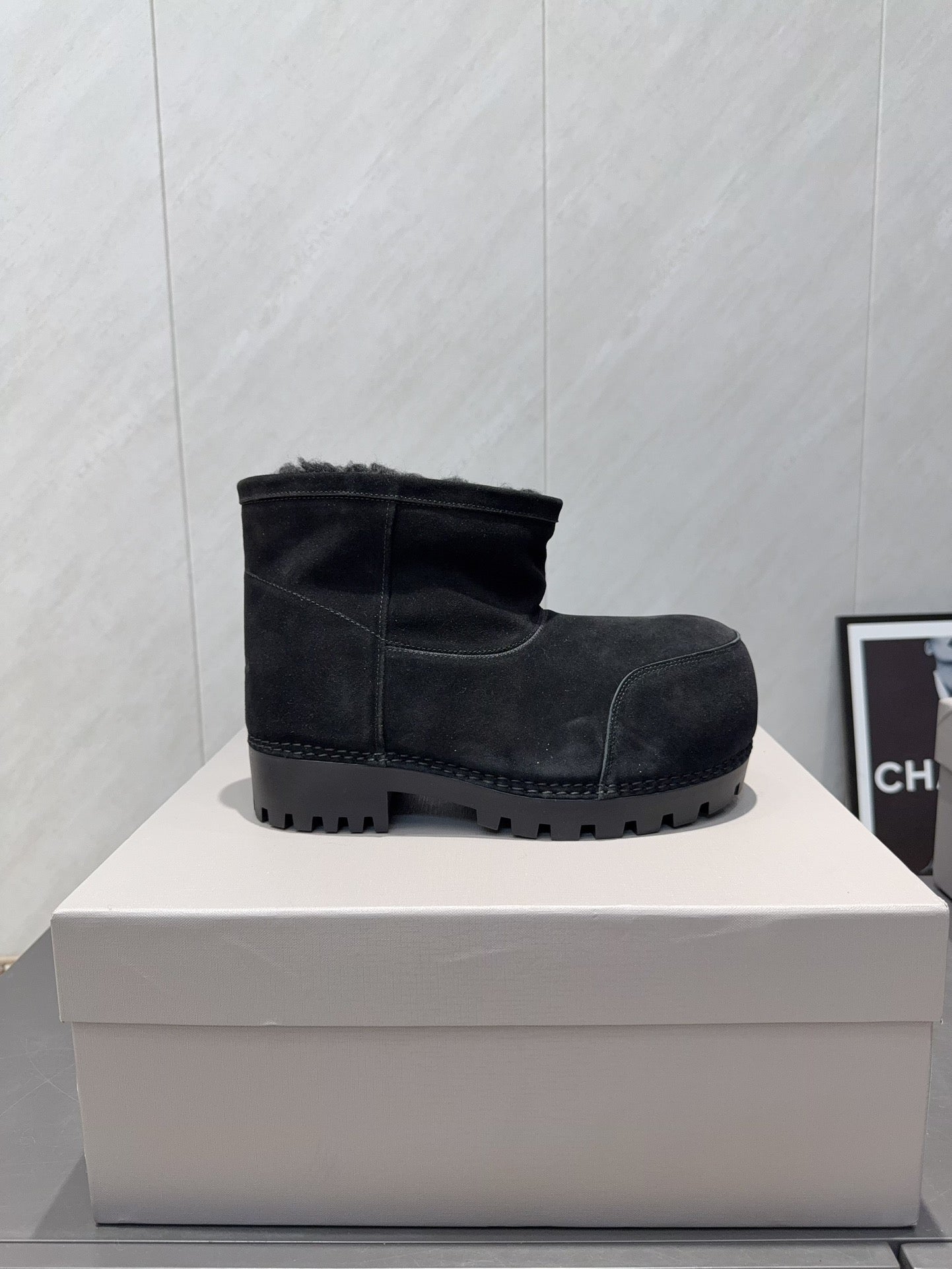 BALENCIAGA 25S LOW ANKLE BOOTS PLATFORM HEEL IN BLACK SUEDE STYLE 8
