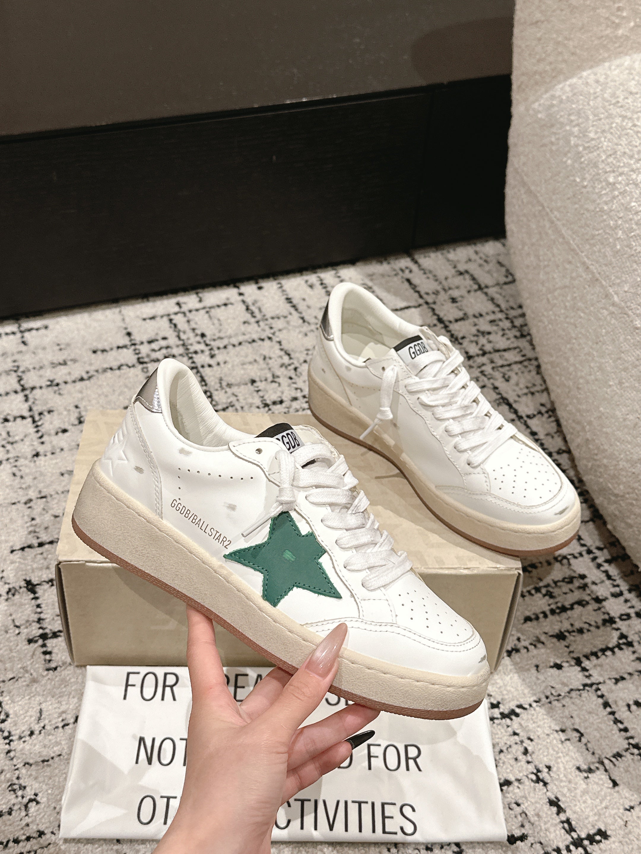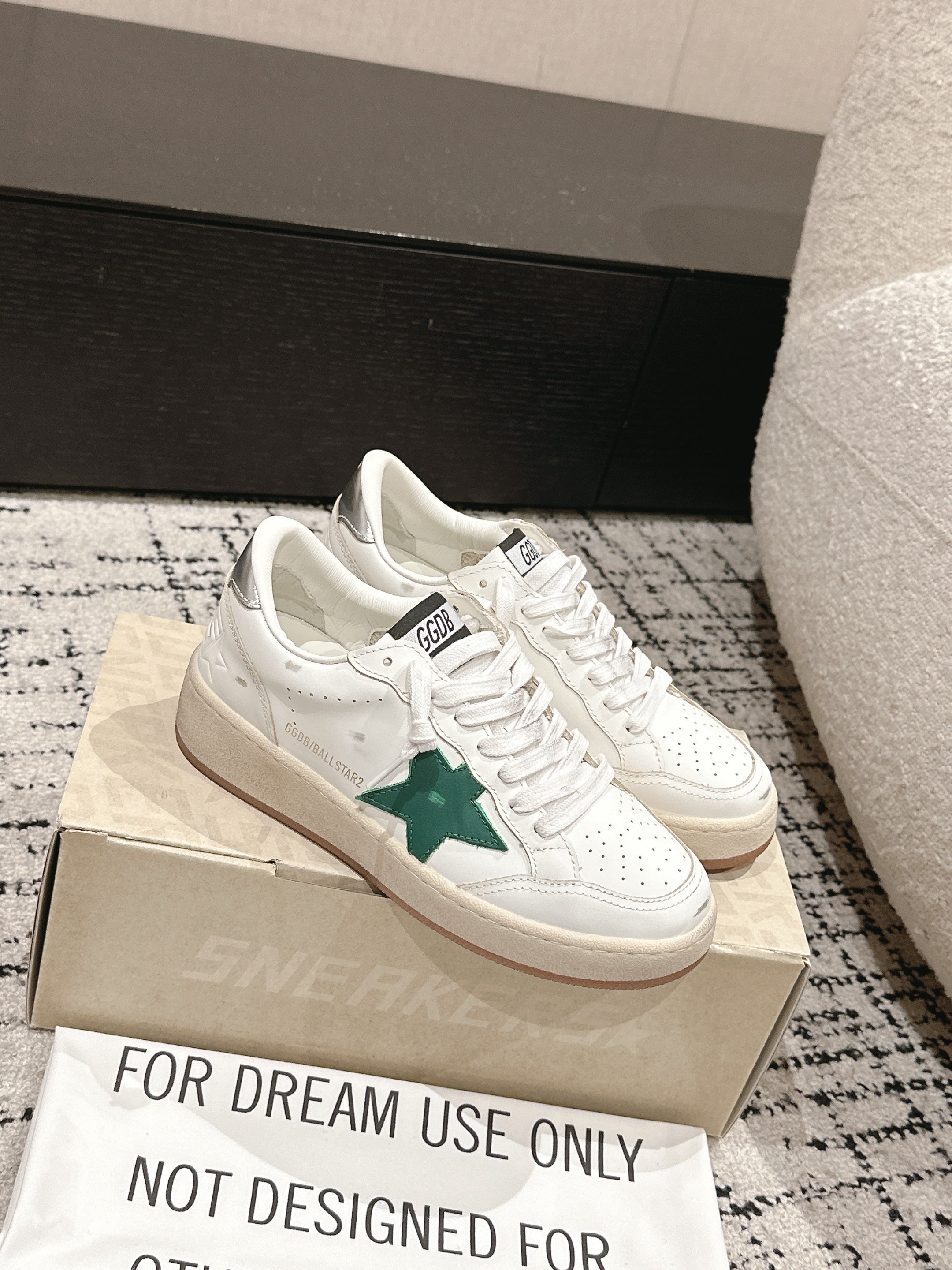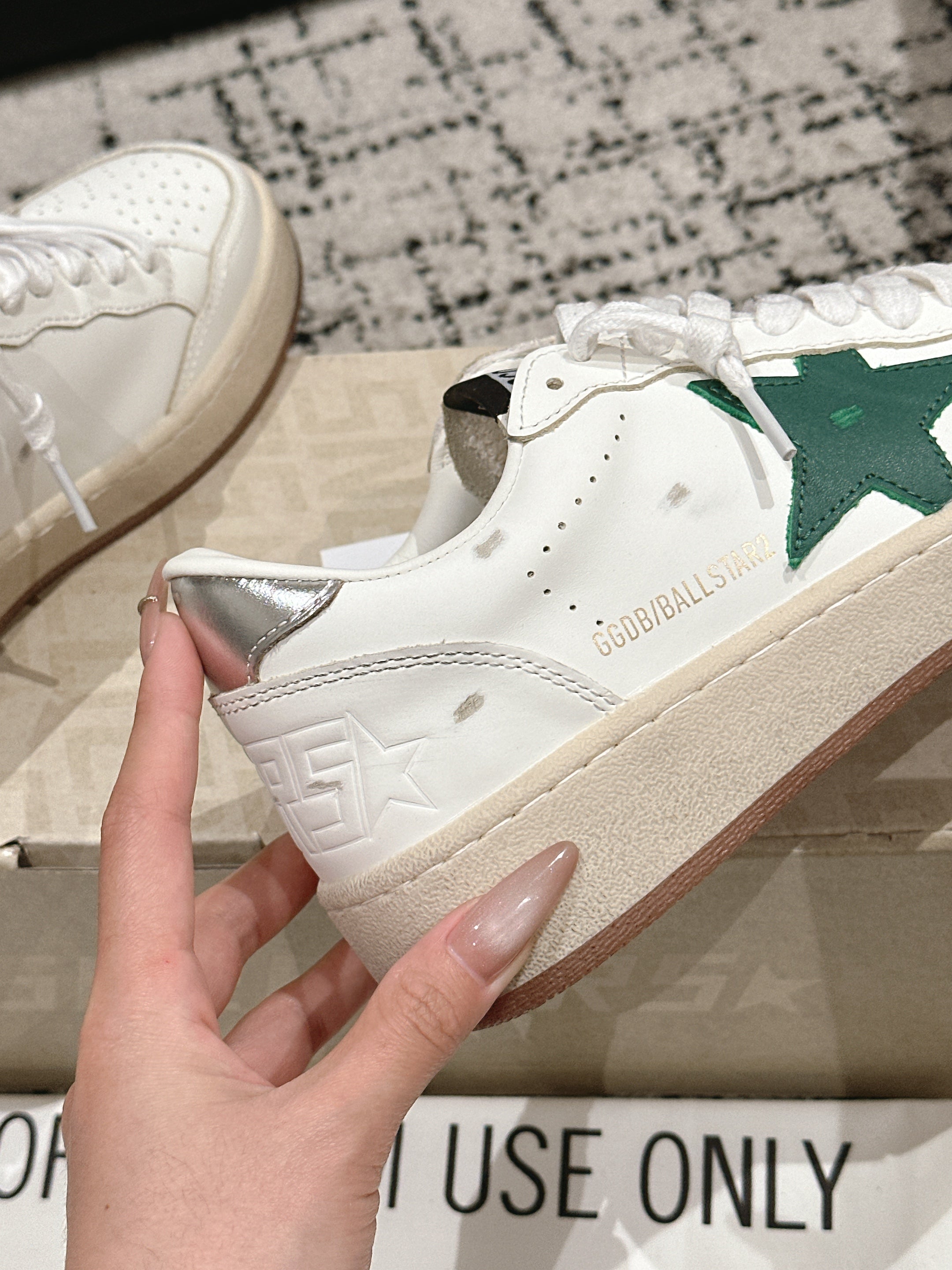 BALL STAR 2 SNEAKERS IN WHITE CALFSKIN GREEN STAR AND SILVER HEEL TAB