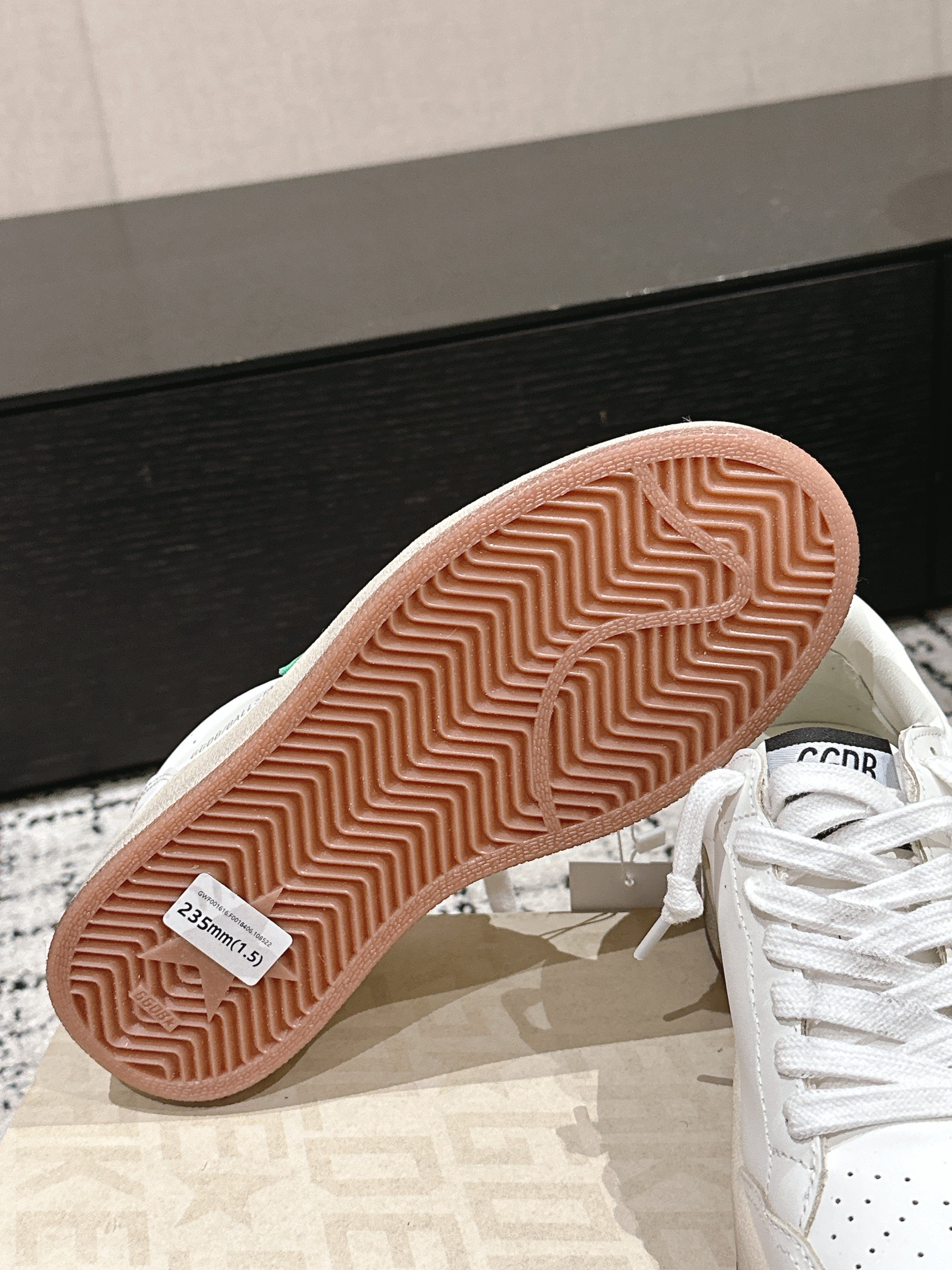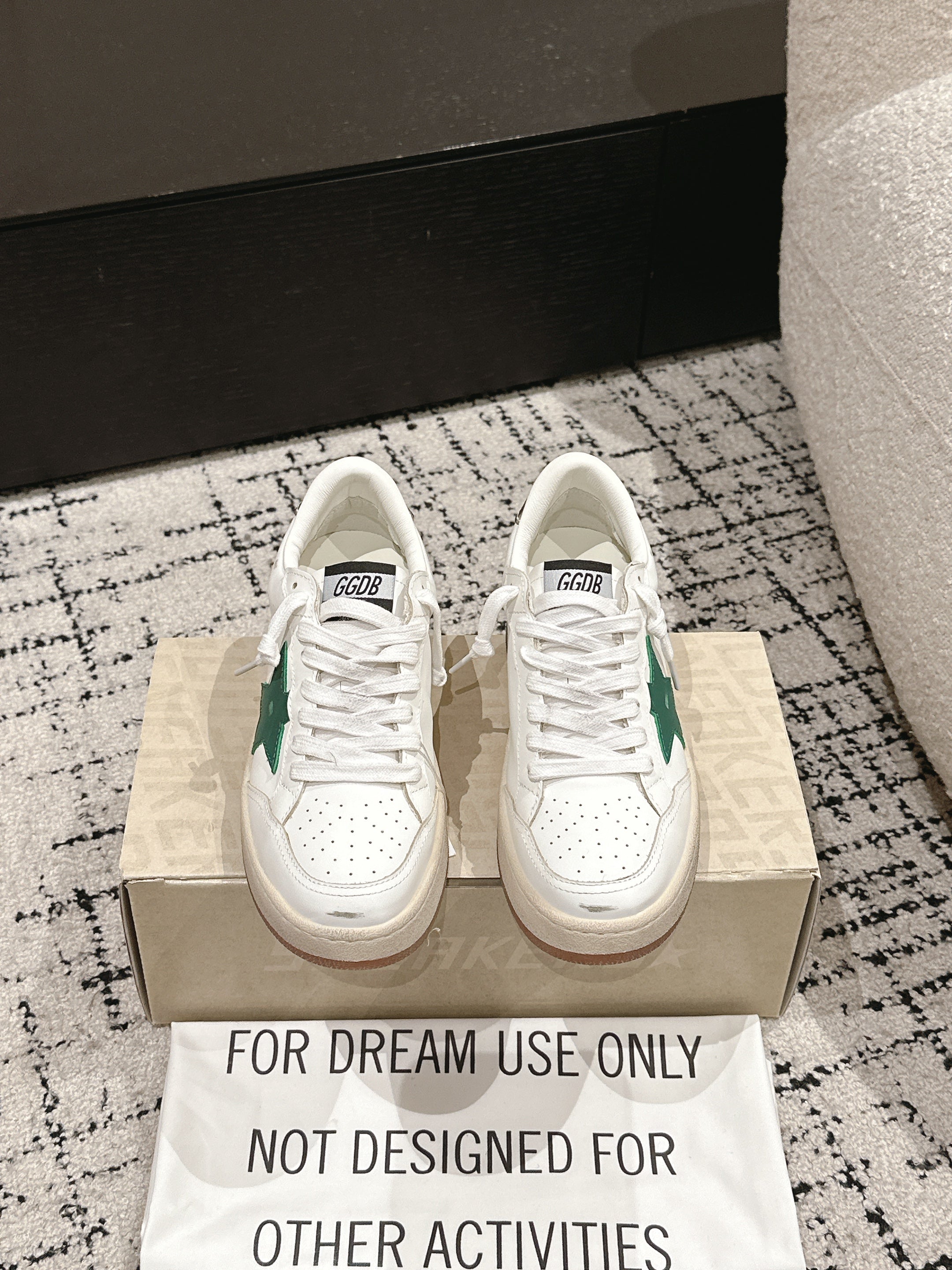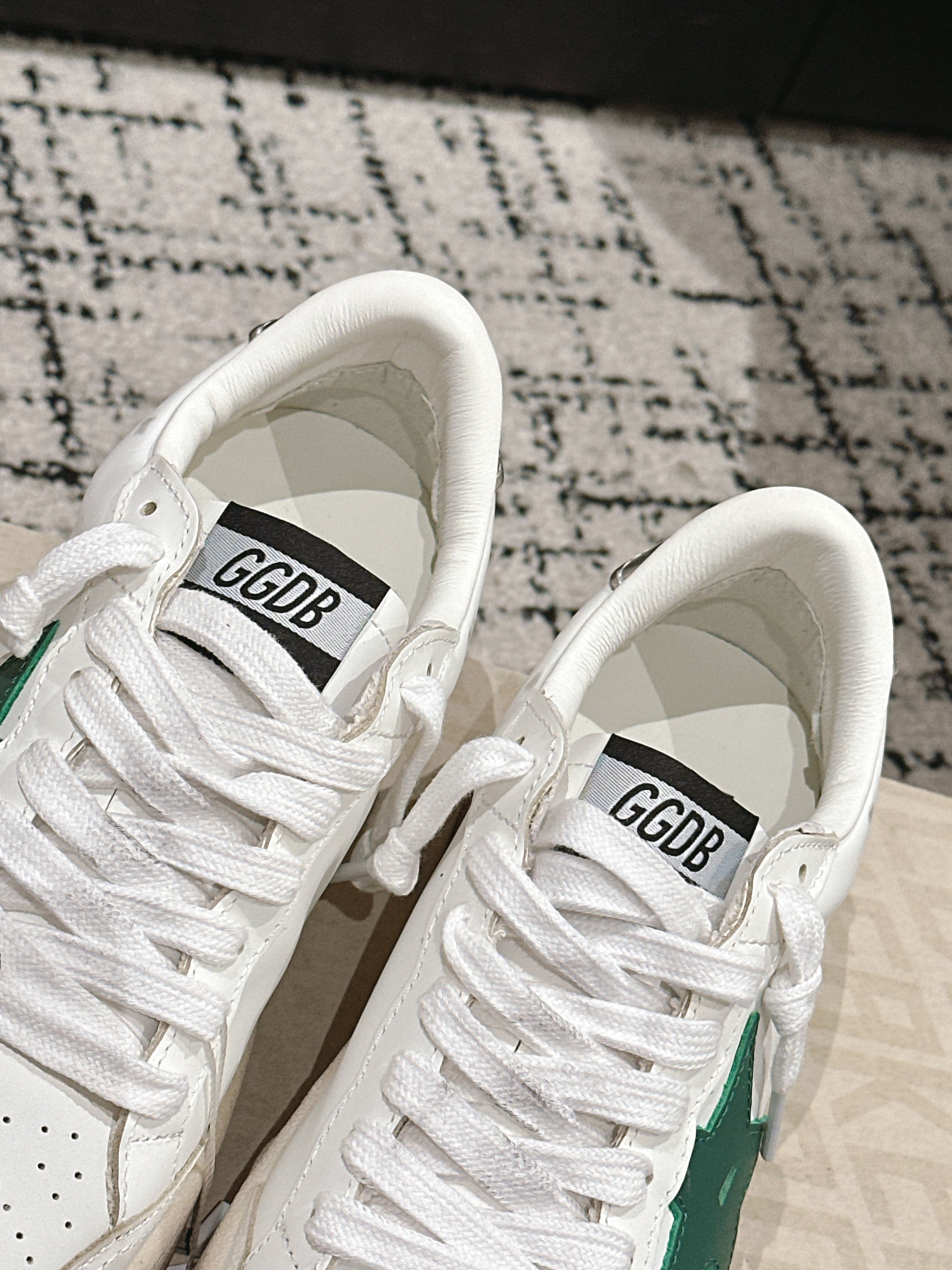 BALL STAR 2 SNEAKERS IN WHITE CALFSKIN GREEN STAR AND SILVER HEEL TAB