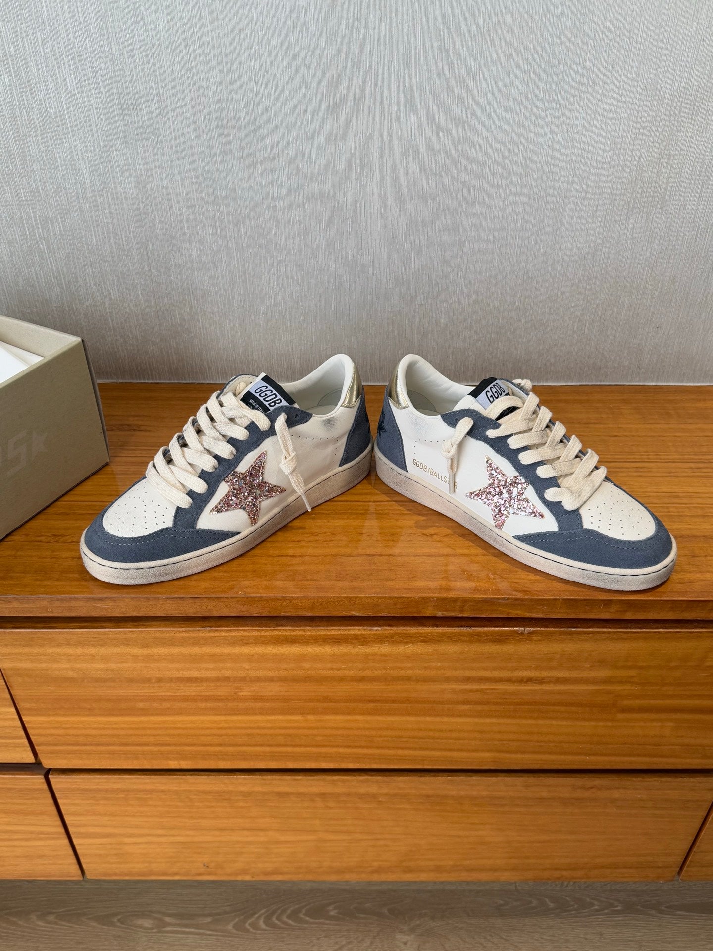 BALL STAR SNEAKERS GLITTER STAR IN BRIGHT GRAY SUEDE AND WHITE CALFSKIN