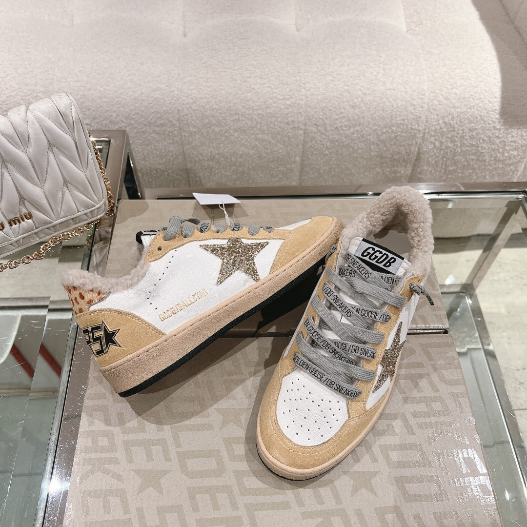 BALL STAR SNEAKERS WITH GLITTER STAR IN WHITE CALFSKIN AND BROWN SUEDE