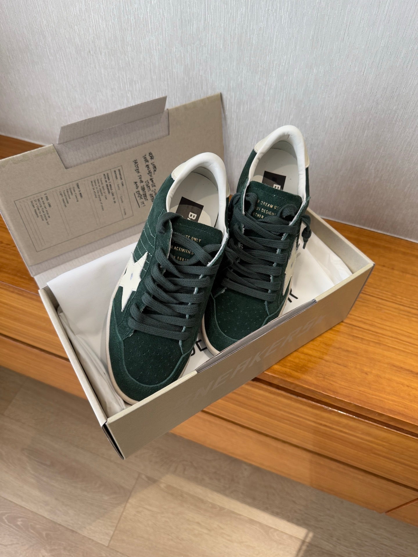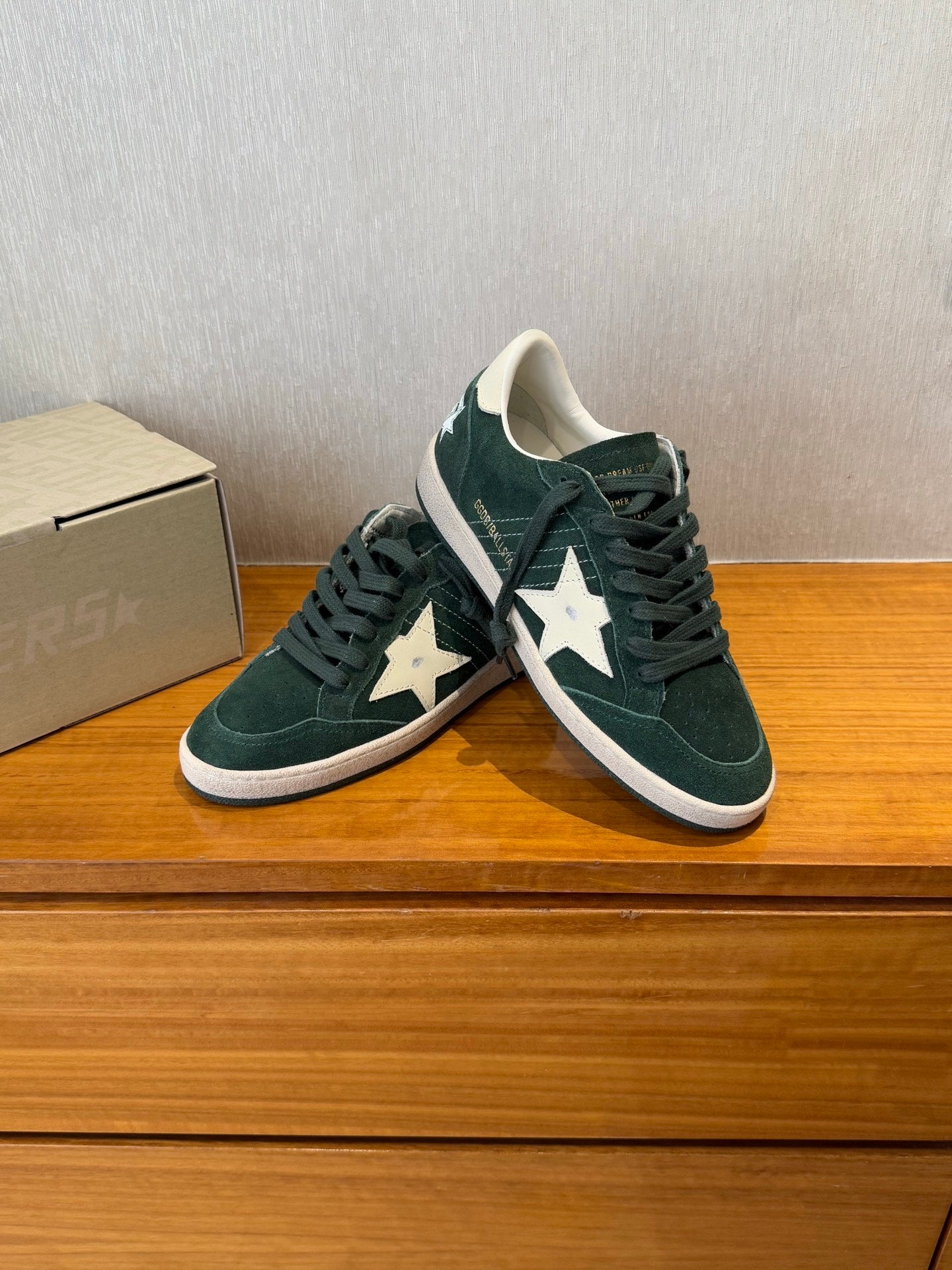 BALL STAR SNEAKERS WITH WHITE CALFSKIN STAR TIMBER GREEN SUEDE UPPER