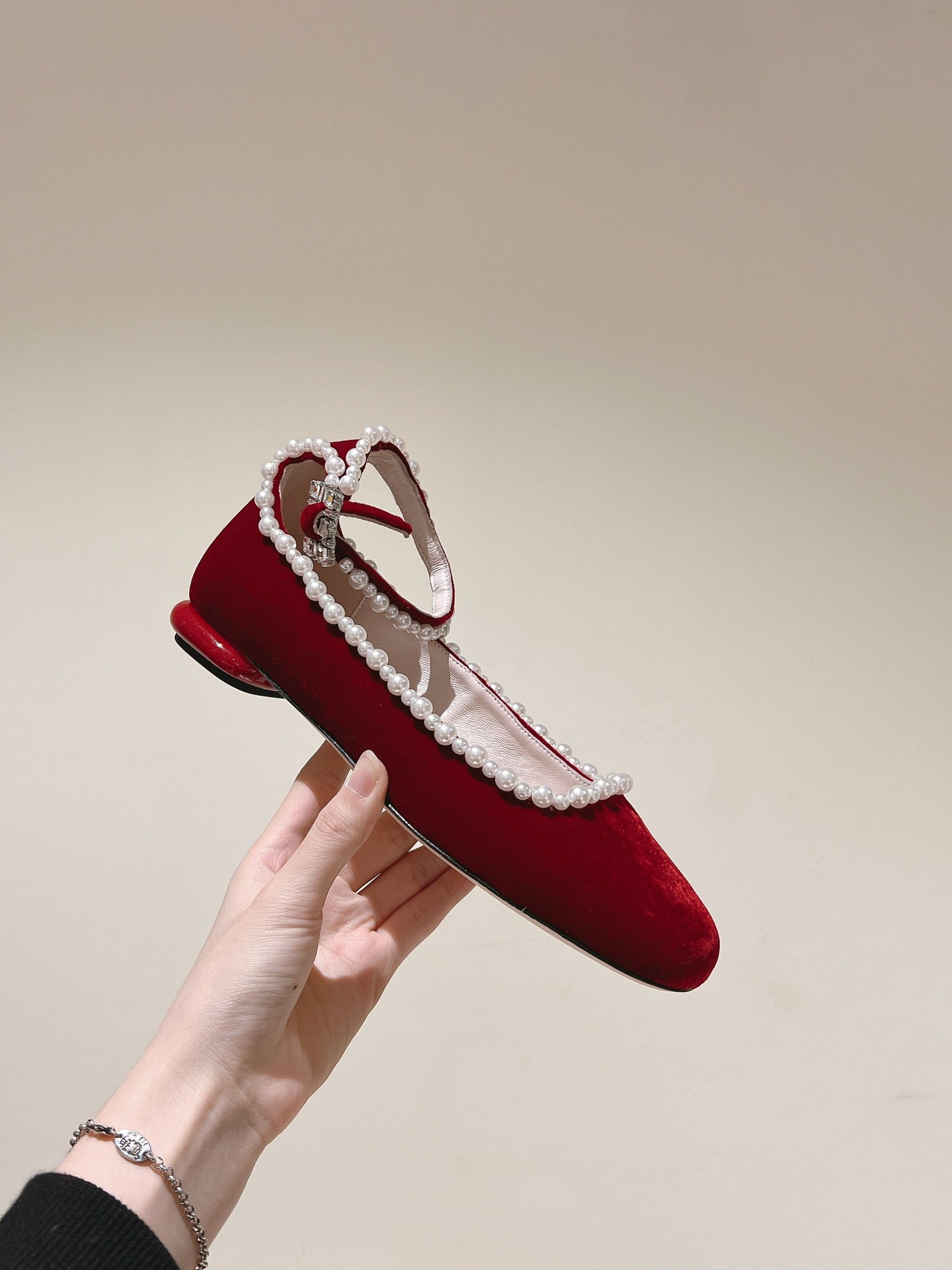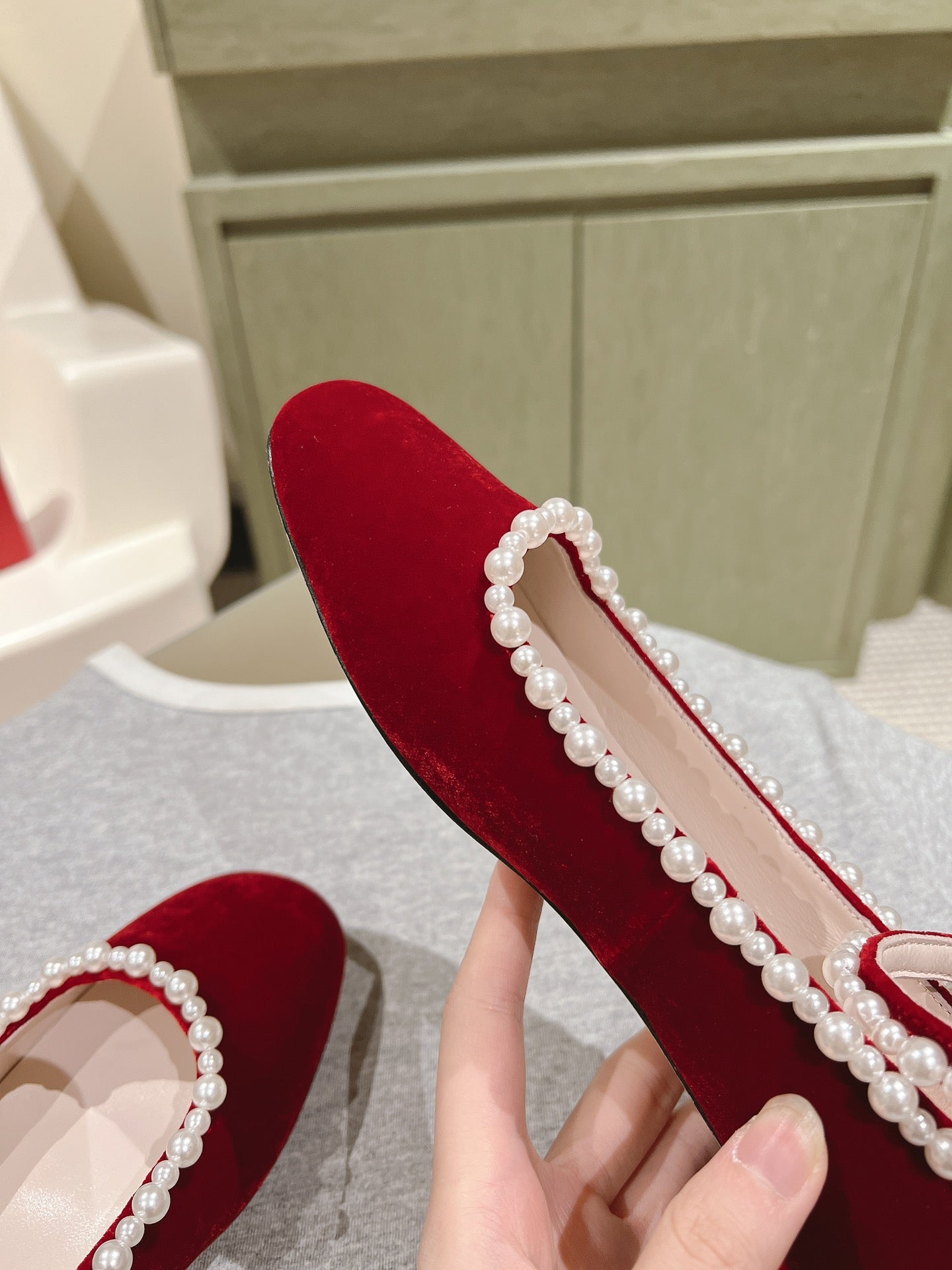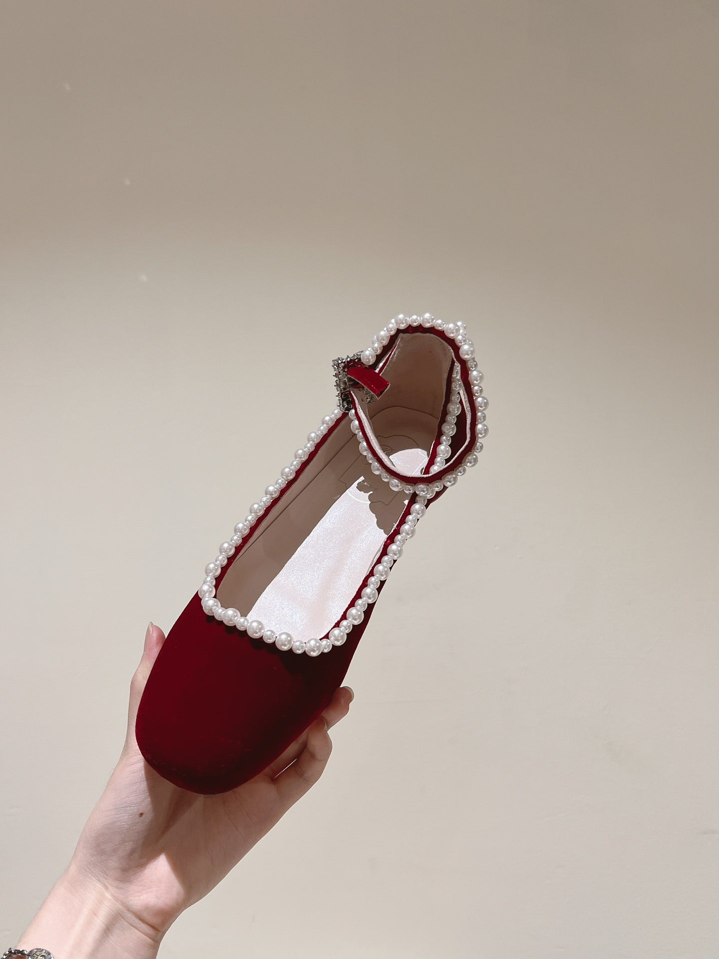BALLERINAS MARY JANE IN BURGUNDY RED SUEDE WITH PEARL TRIM