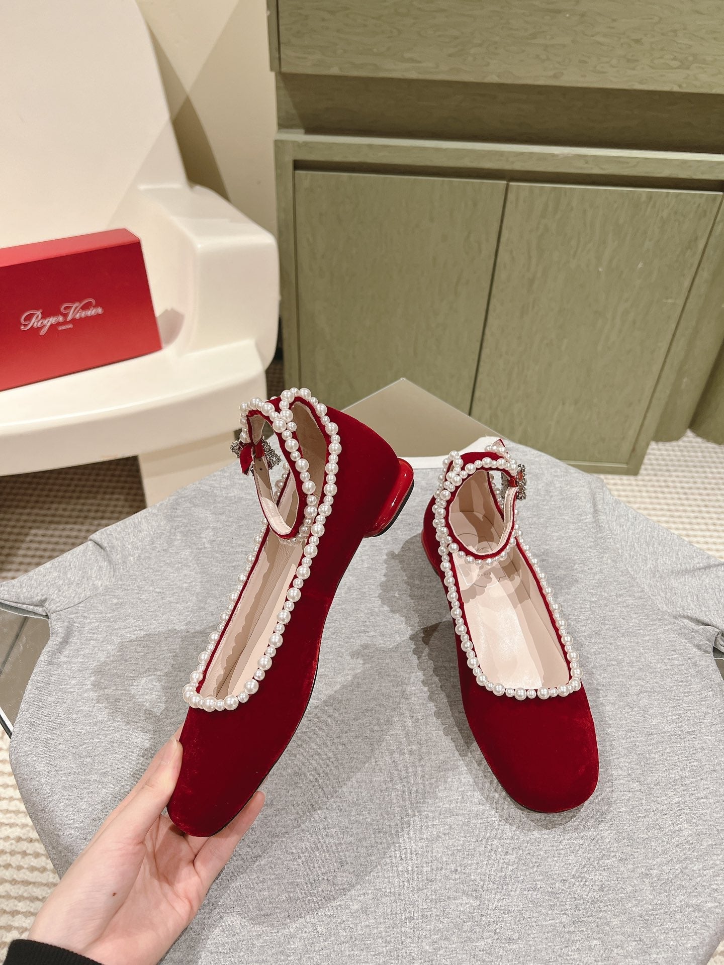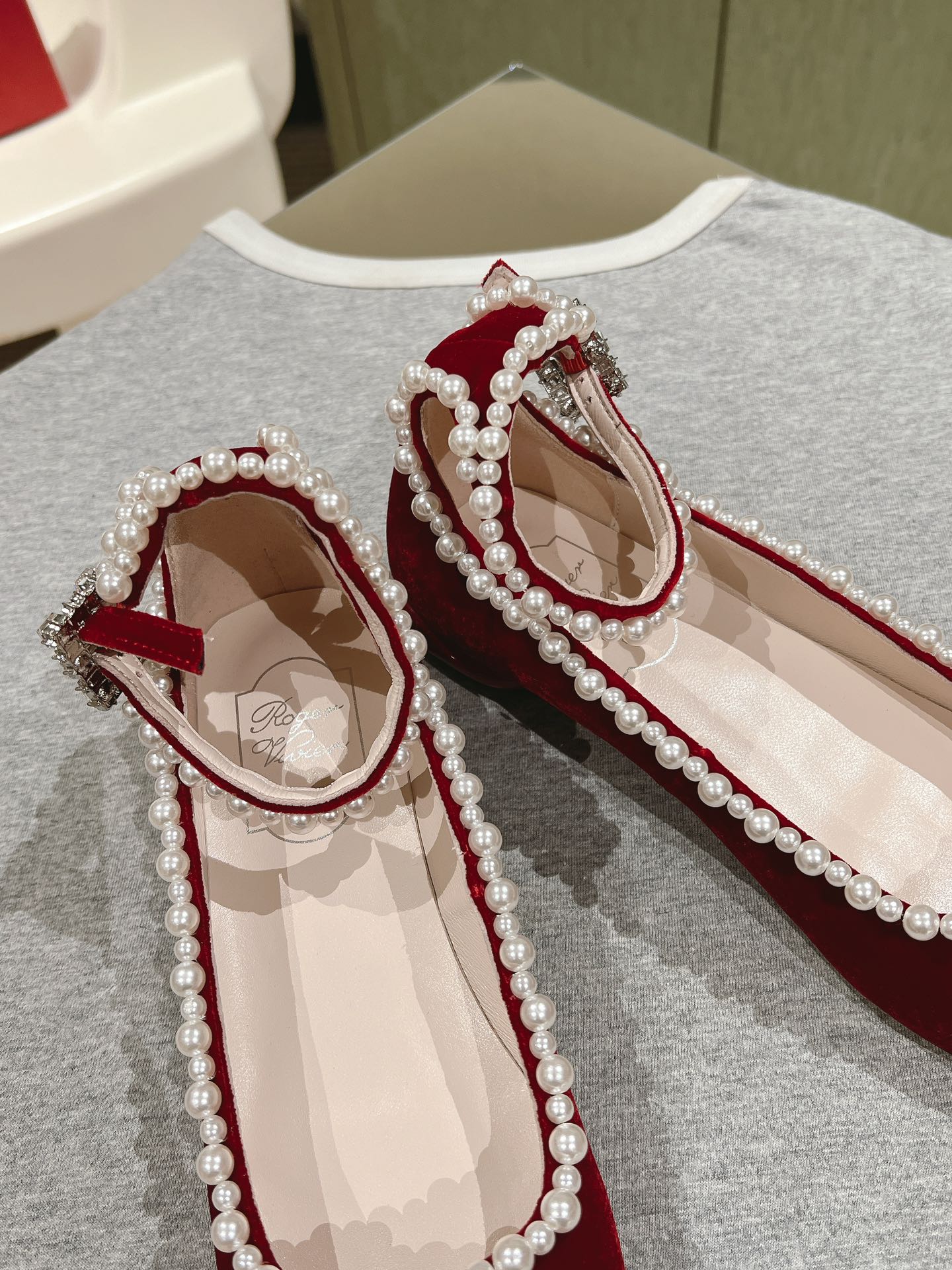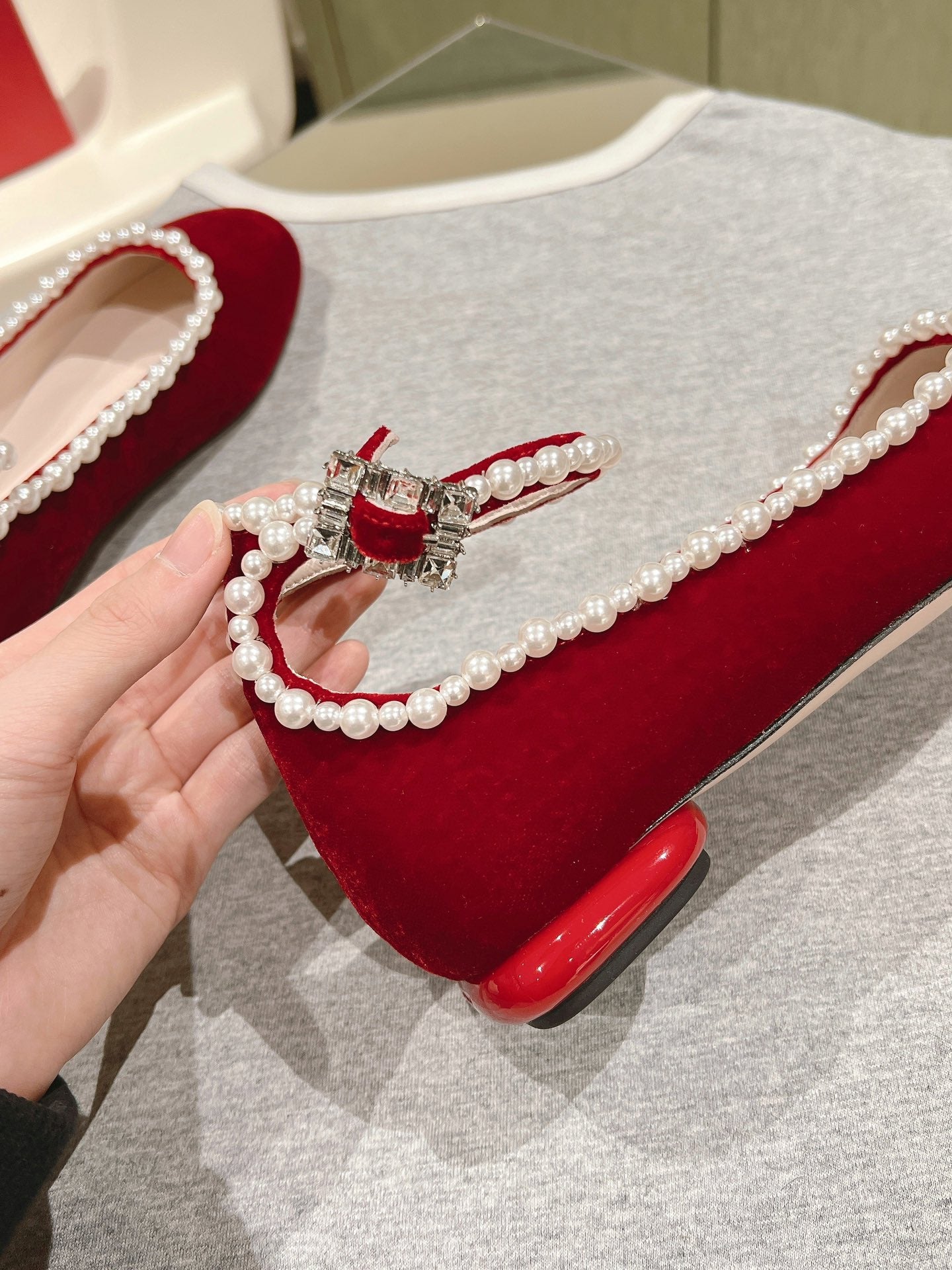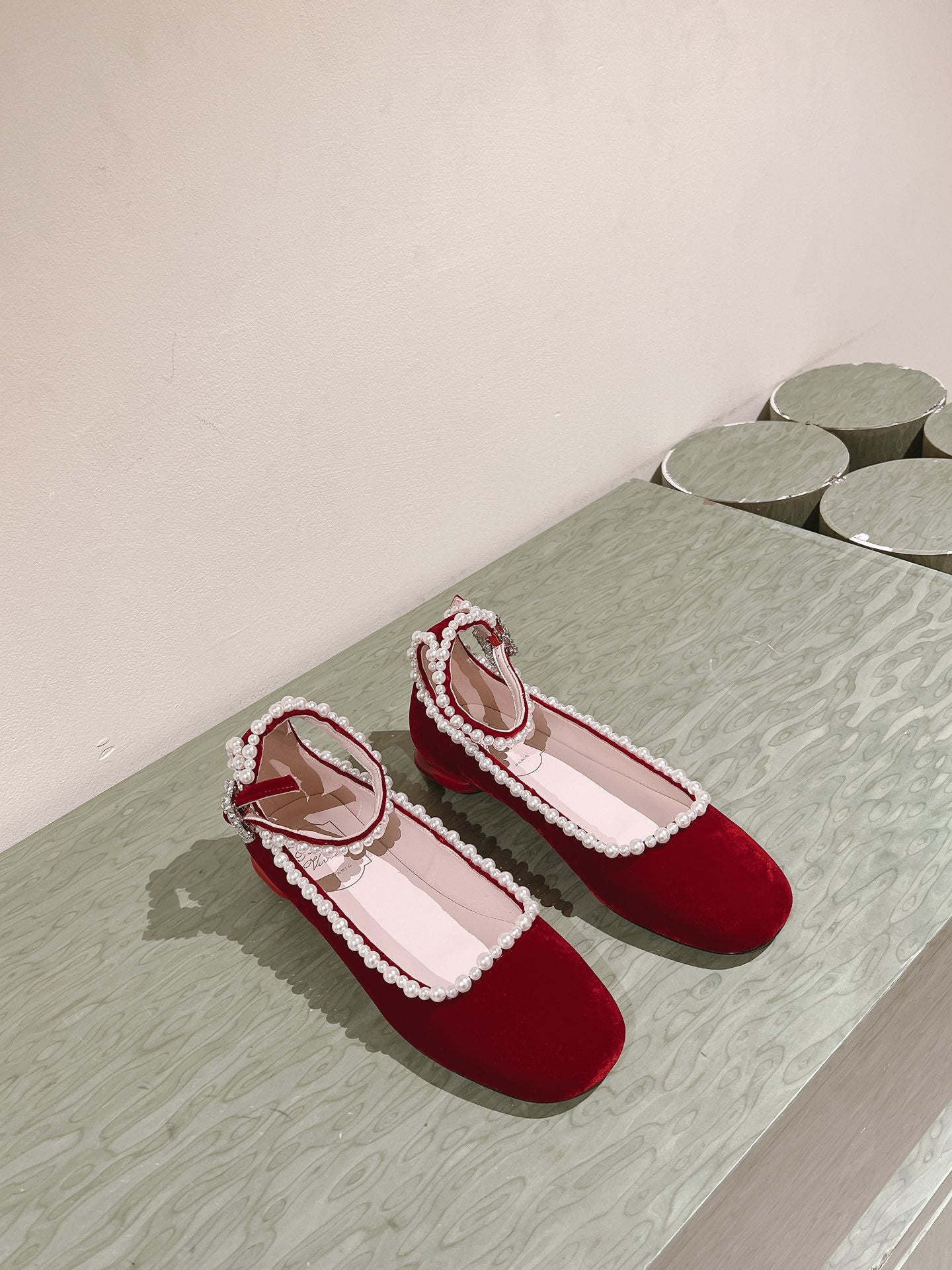 BALLERINAS MARY JANE IN BURGUNDY RED SUEDE WITH PEARL TRIM