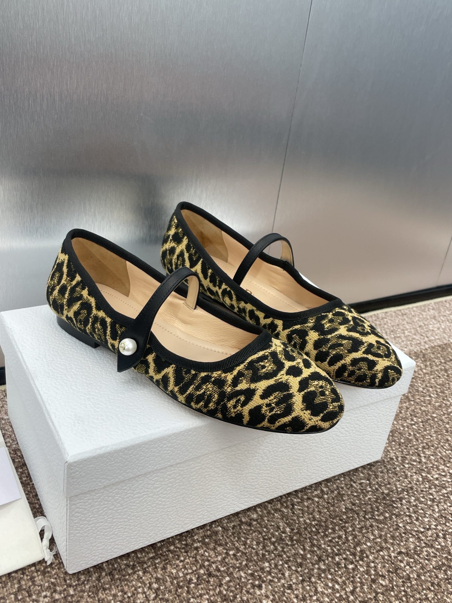BALLET FLAT CAMEL PONY HAIR CALFSKIN WITH BROWN LEOPARD MOTIF