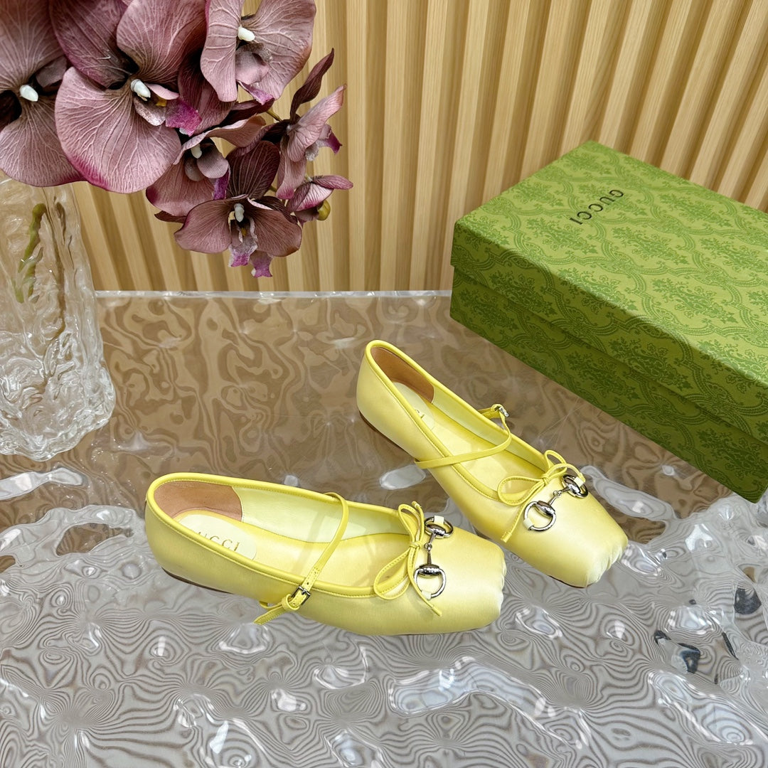 BALLET FLAT IN LIGHT YELLOW SILK WITH SILVER HARDWARE