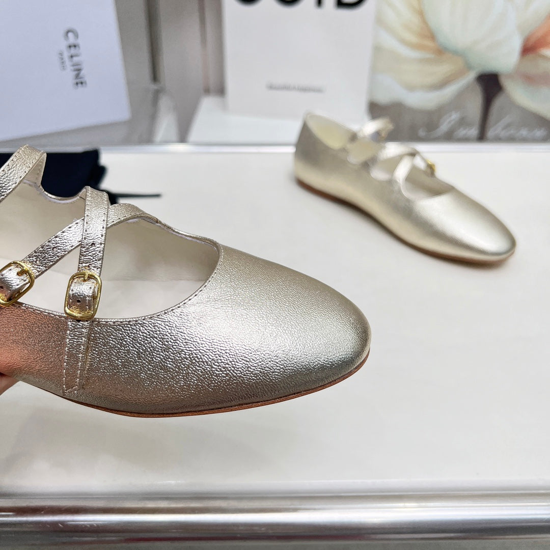 BALLET FLAT WITH CROSSOVER STRAP IN LIGHT GOLD LAMBSKIN