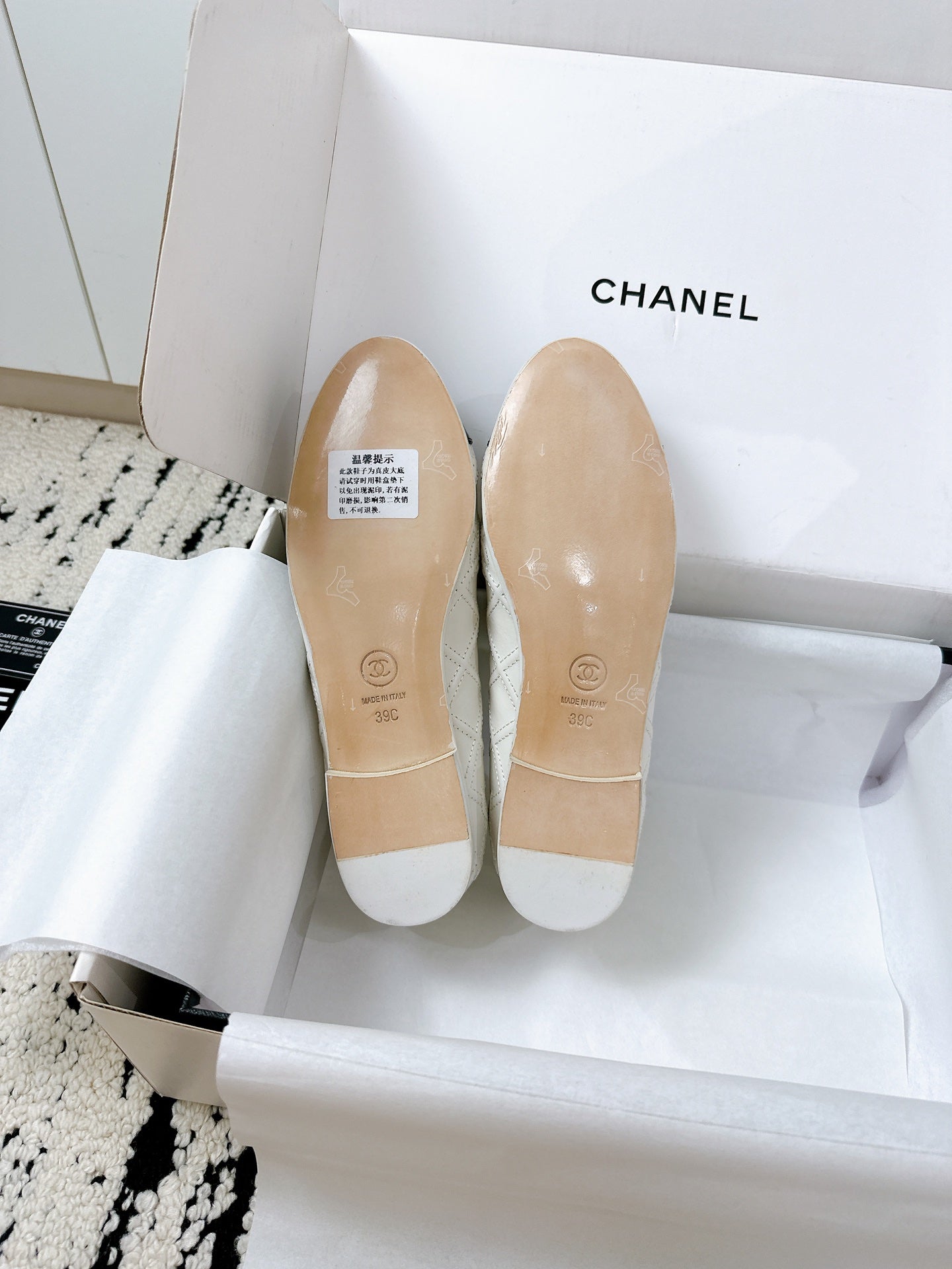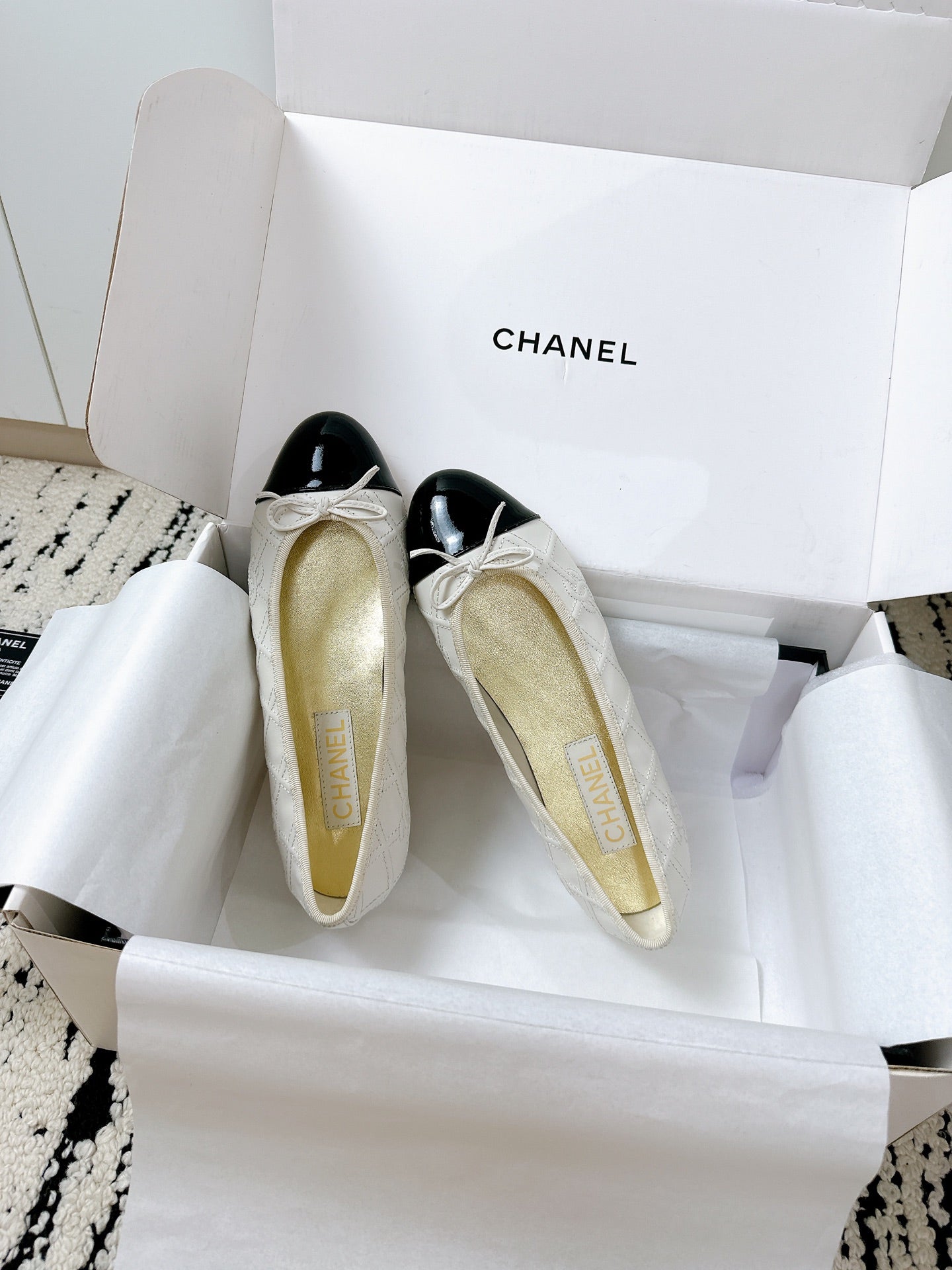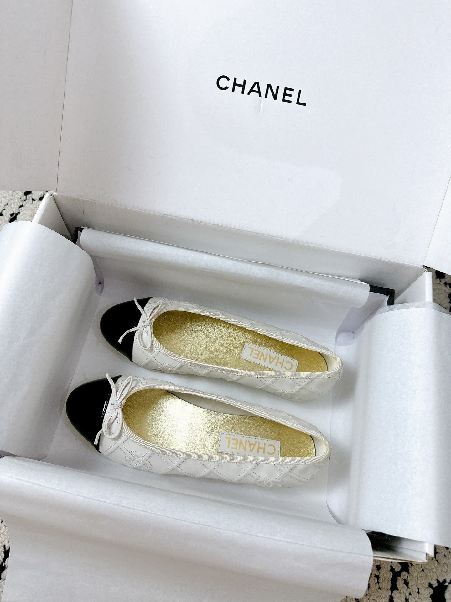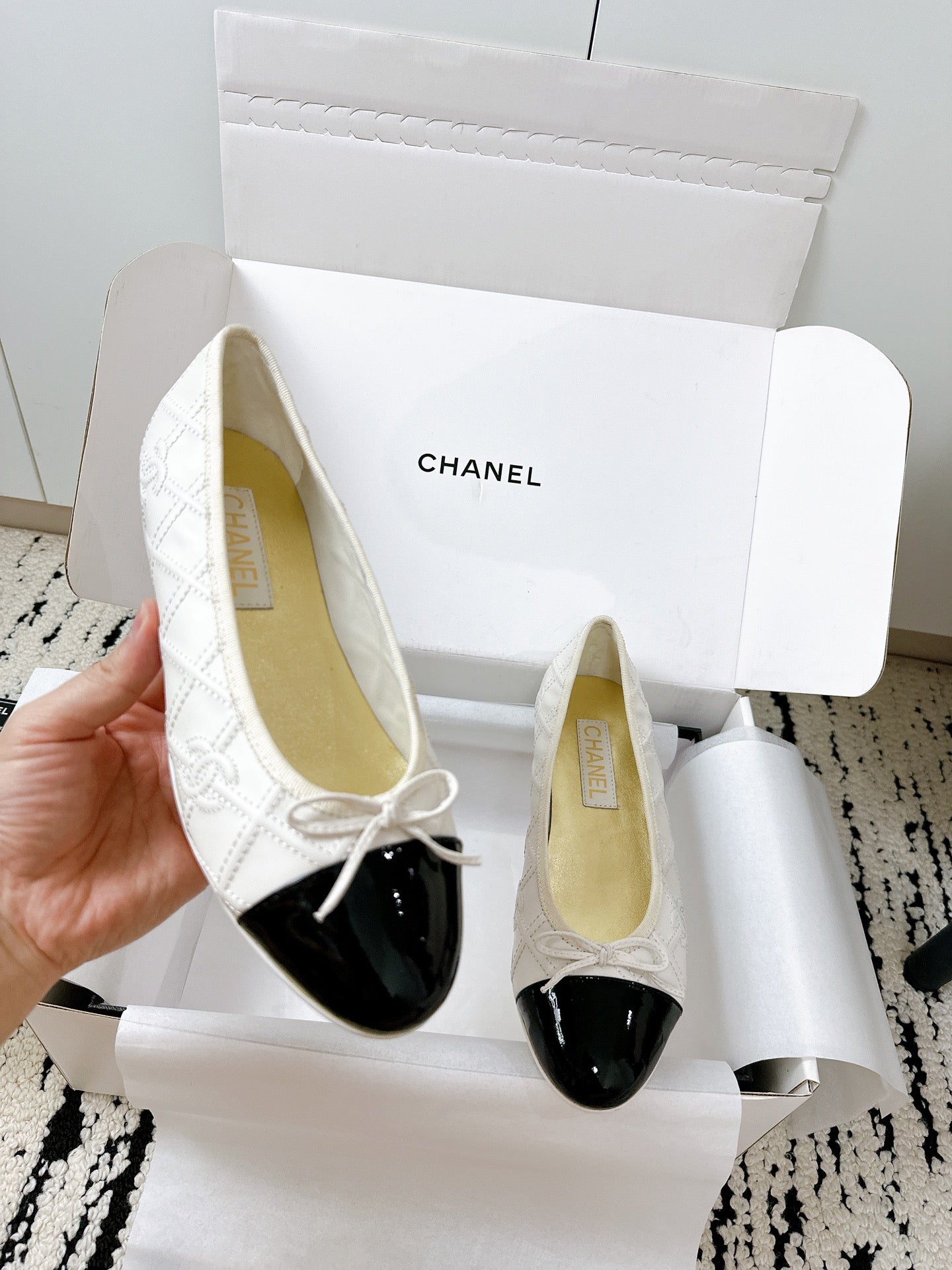 BALLET FLATS BOW IN WHITE CALFSKIN QUILTED AND BLACK GLOSSY