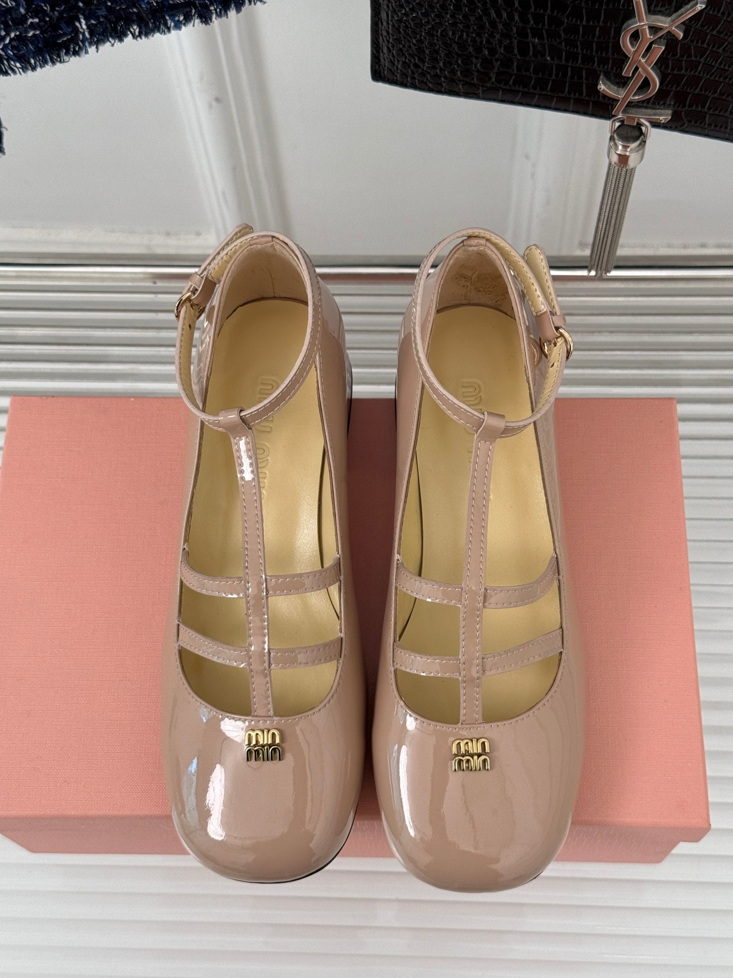BALLET PUMPS WITH STRAP IN BEIGE GLOSSY LAMBSKIN