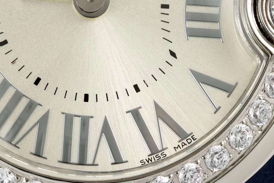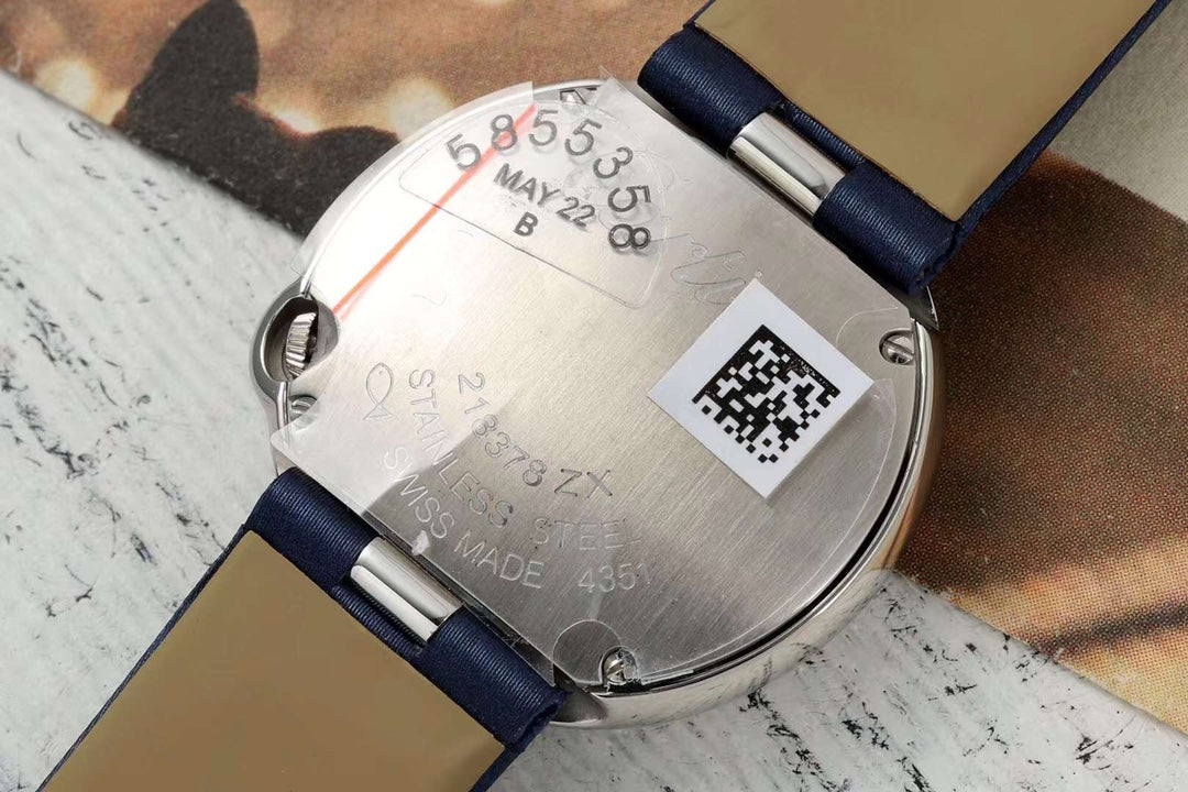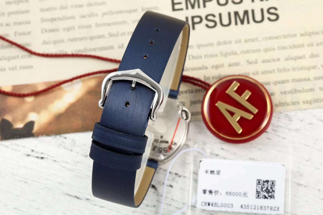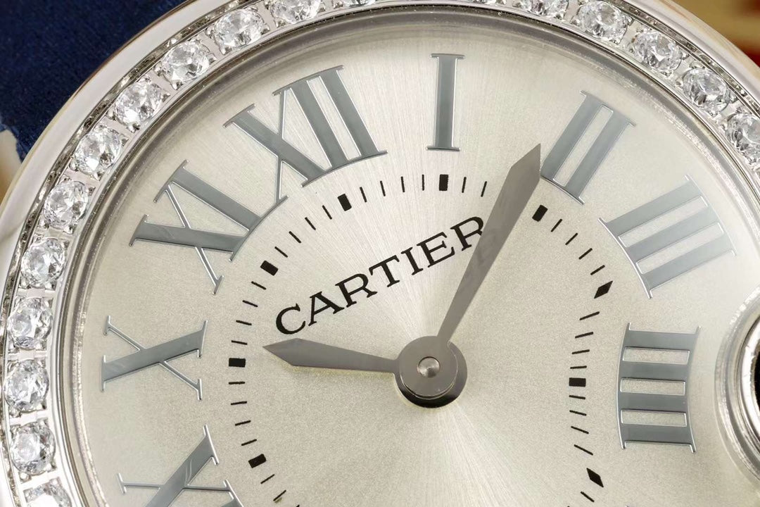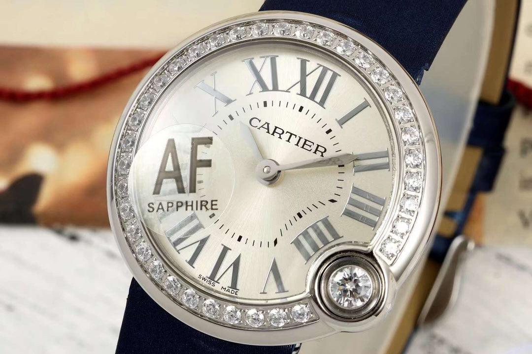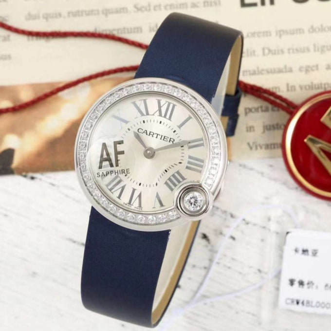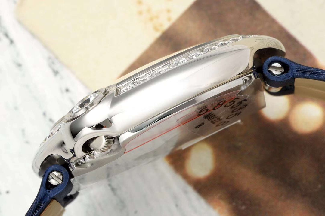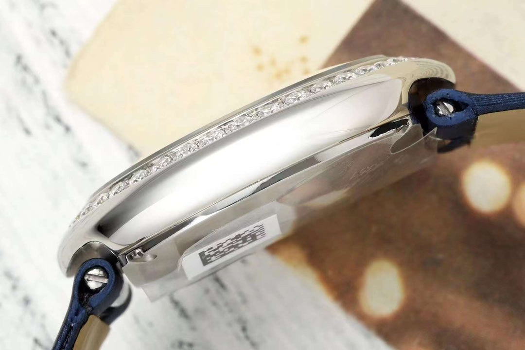 BALLON BLANC DE CARTIER WATCH GOLD CASE AND NAVY BLUE CALFSKIN WITH CRYSTALS