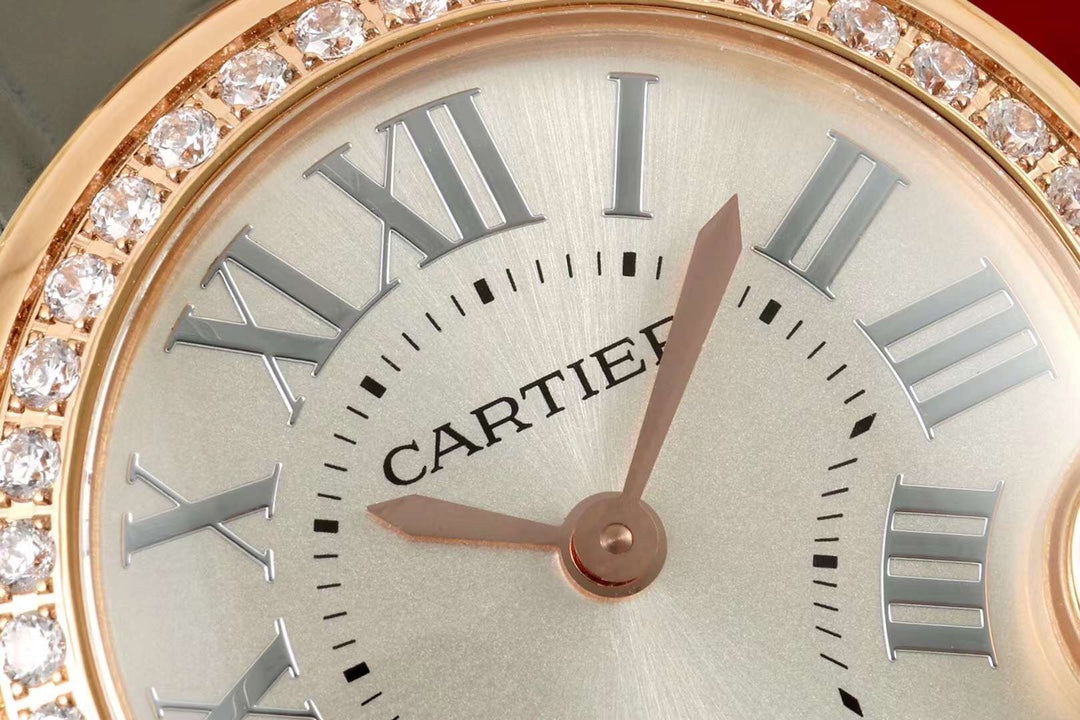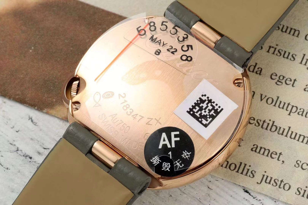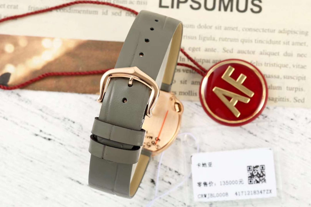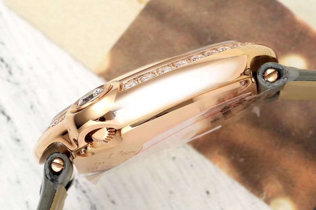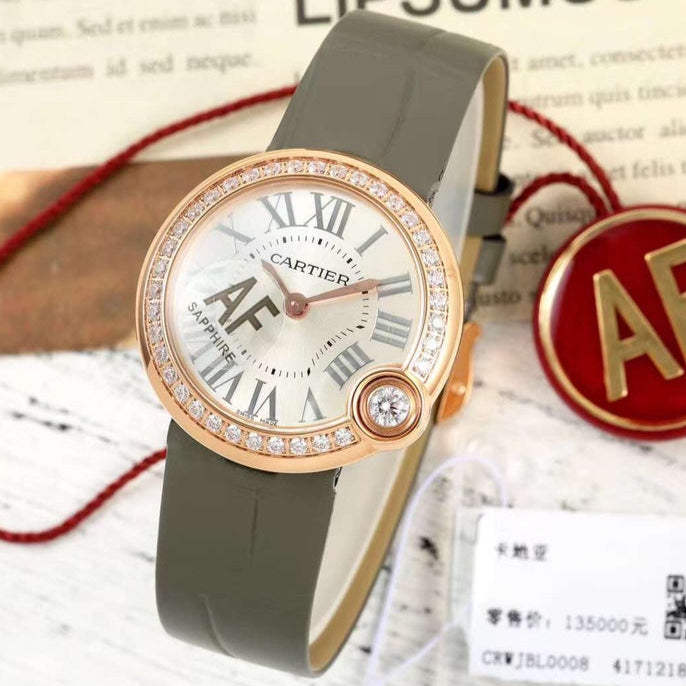 BALLON BLANC DE CARTIER WATCH GOLD CASE AND WARM GRAY CALFSKIN WITH CRYSTALS