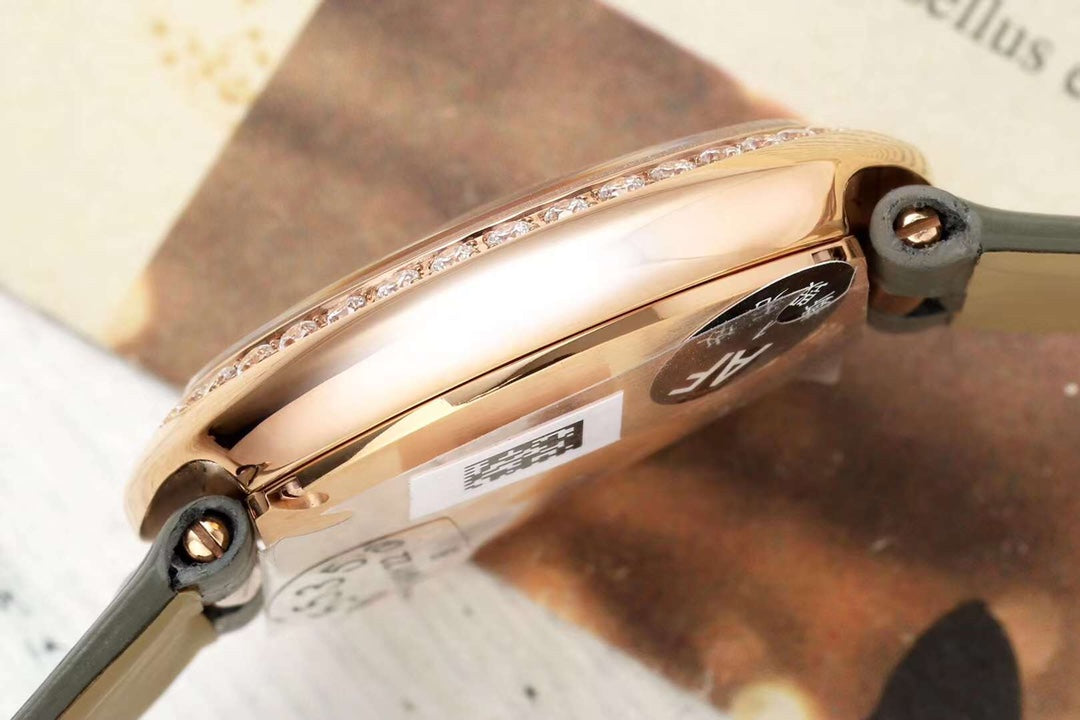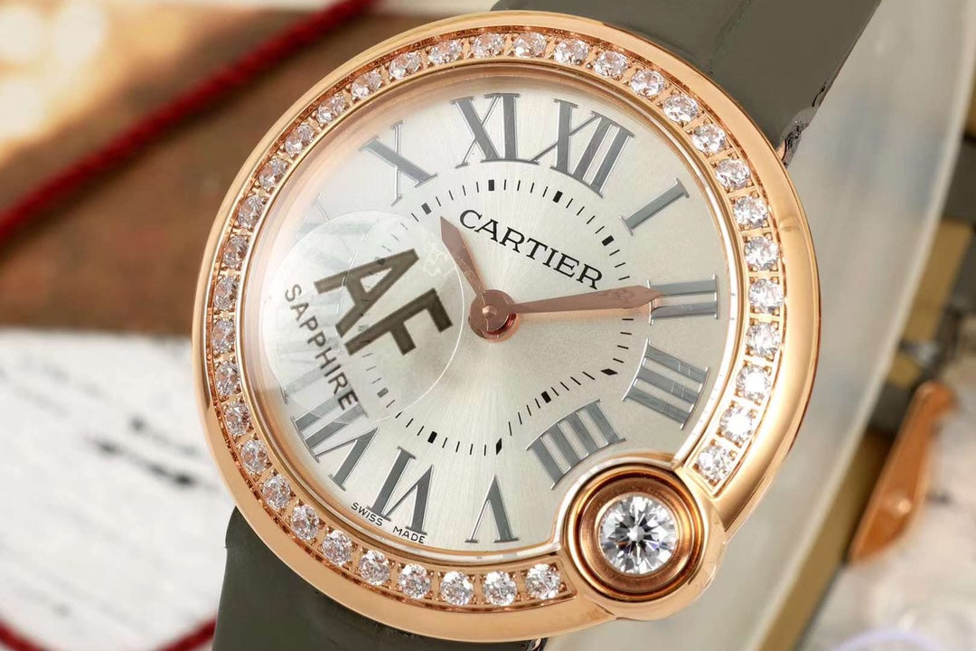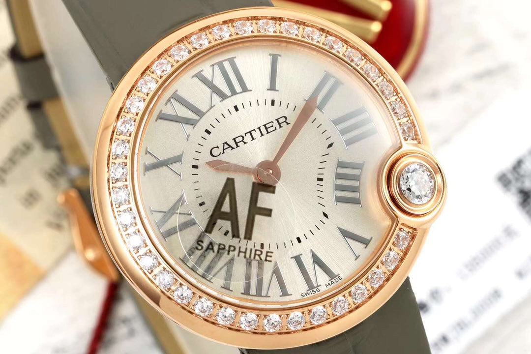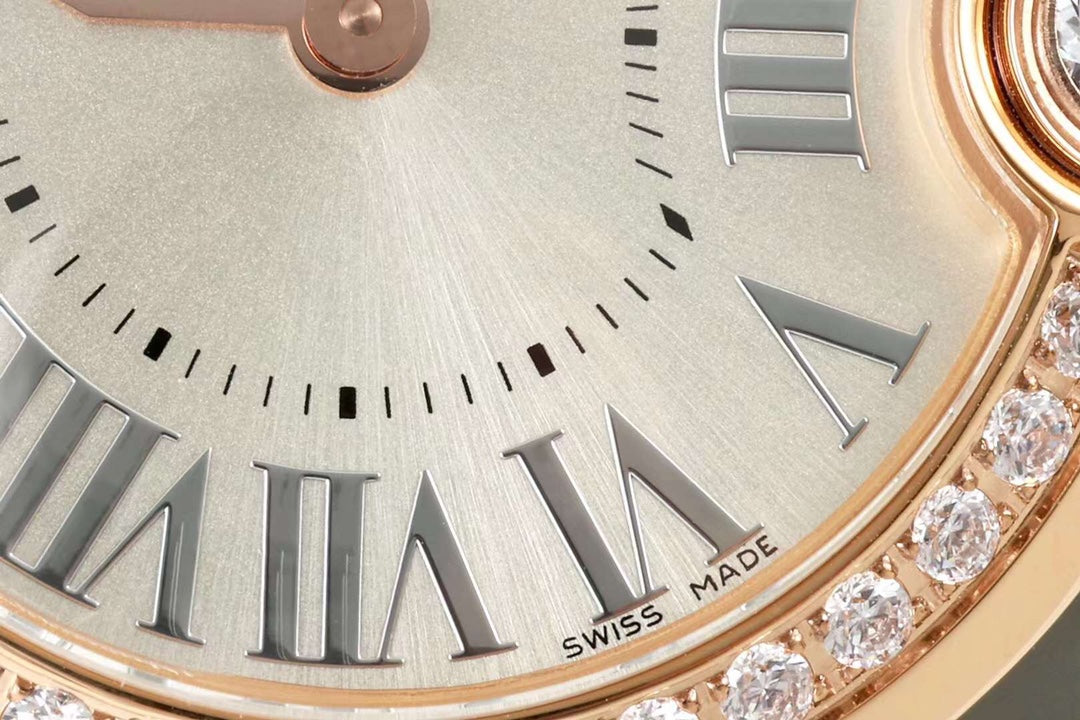 BALLON BLANC DE CARTIER WATCH GOLD CASE AND WARM GRAY CALFSKIN WITH CRYSTALS