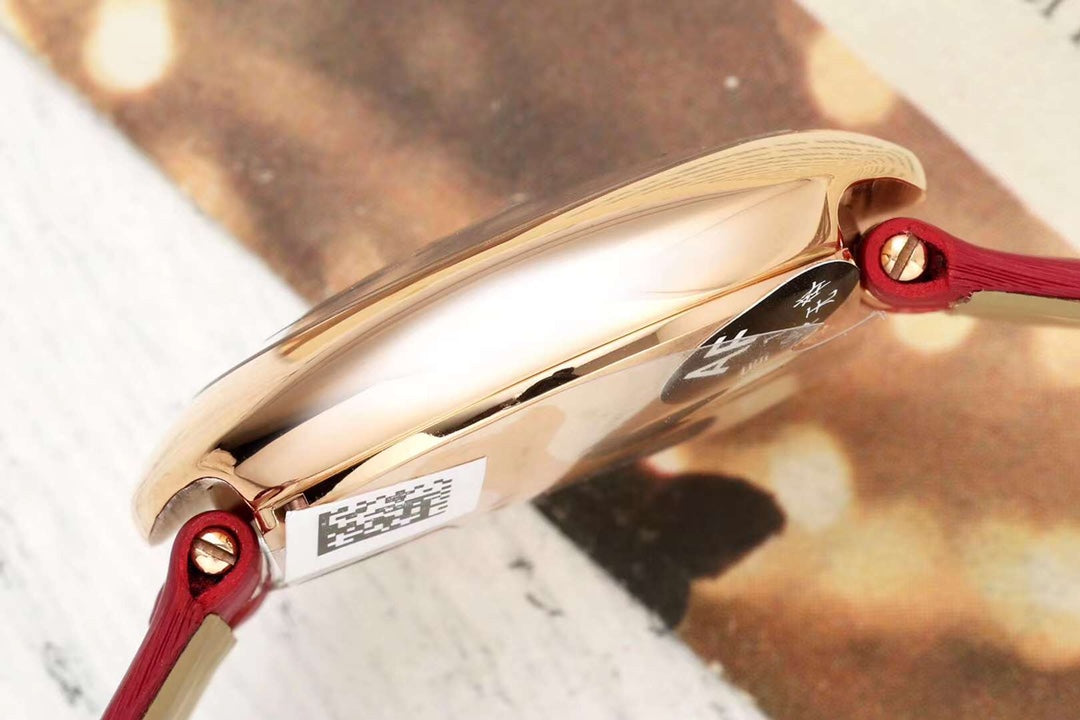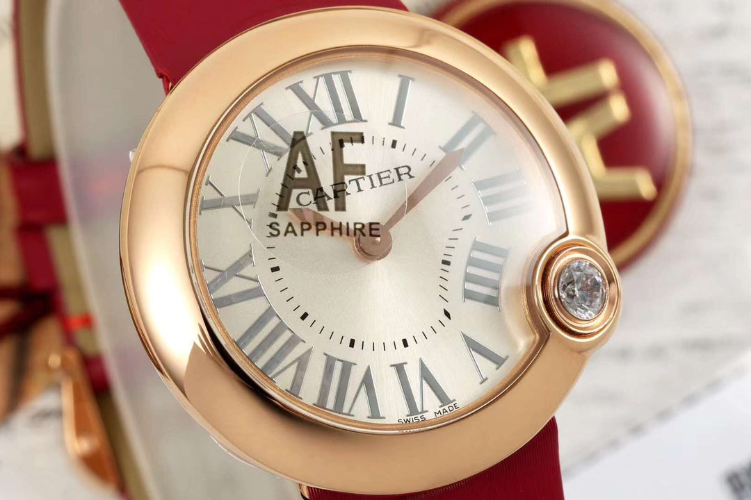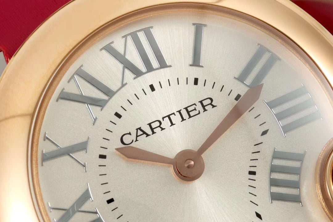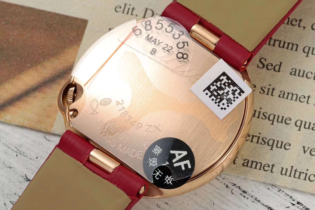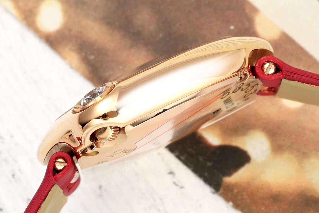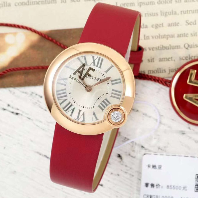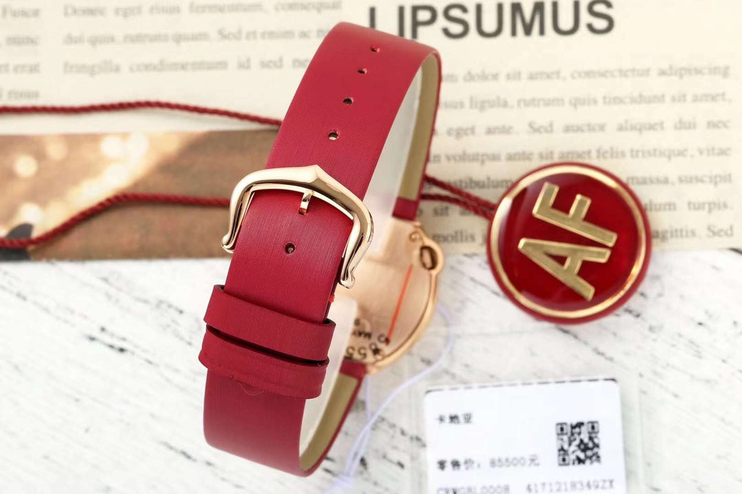 BALLON BLANC DE CARTIER WATCH GOLD CASE WITH CHERRY RED CALFSKIN