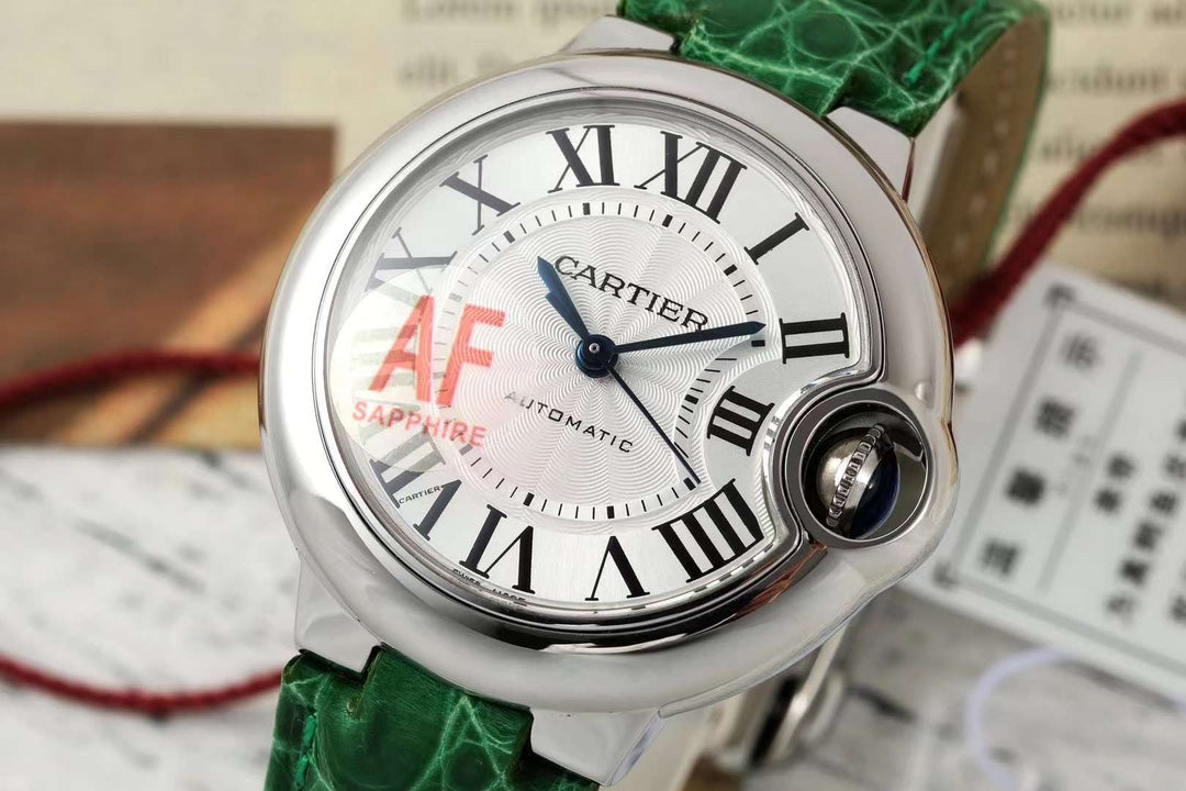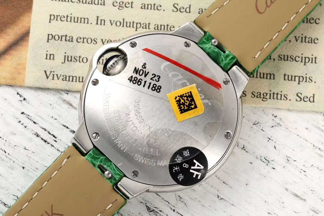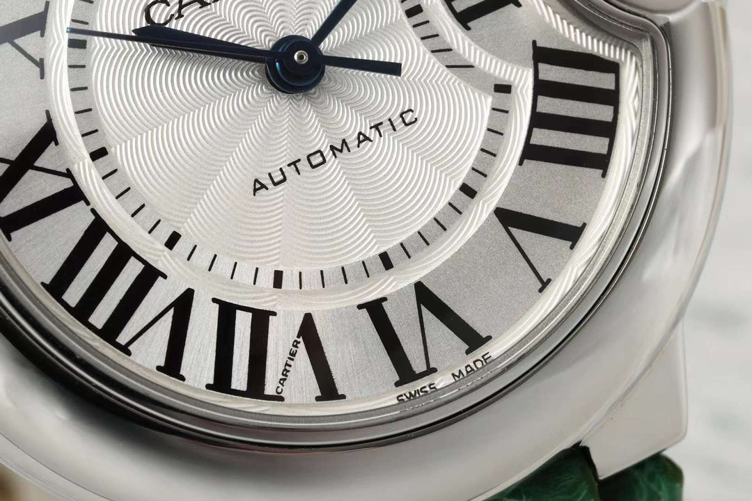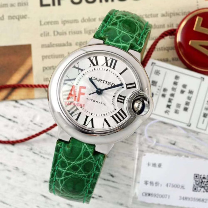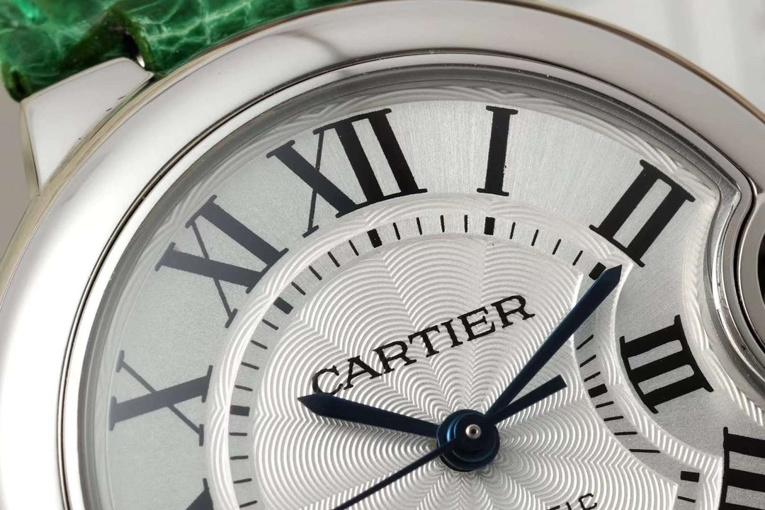 BALLON BLEU DE CARTIER 33 MM WATCH SILVER CASE WITH EMERALD GREEN LEATHER STRAP