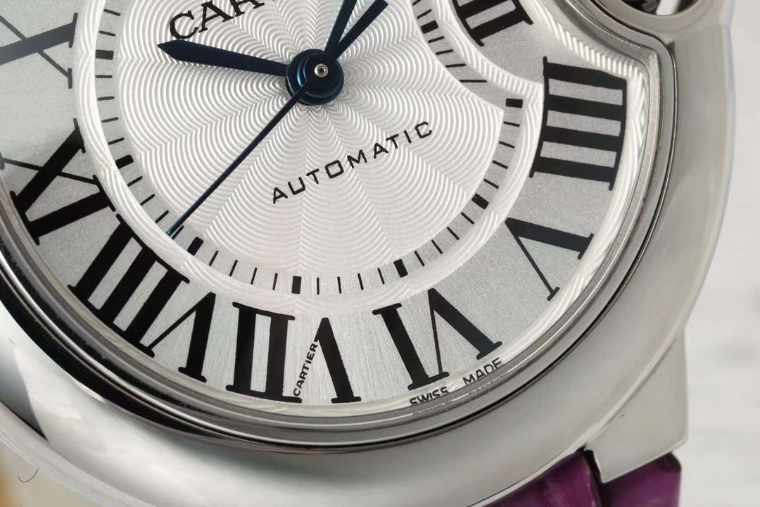 BALLON BLEU DE CARTIER 33 MM WATCH SILVER CASE WITH MAGENTA PURPLE LEATHER STRAP