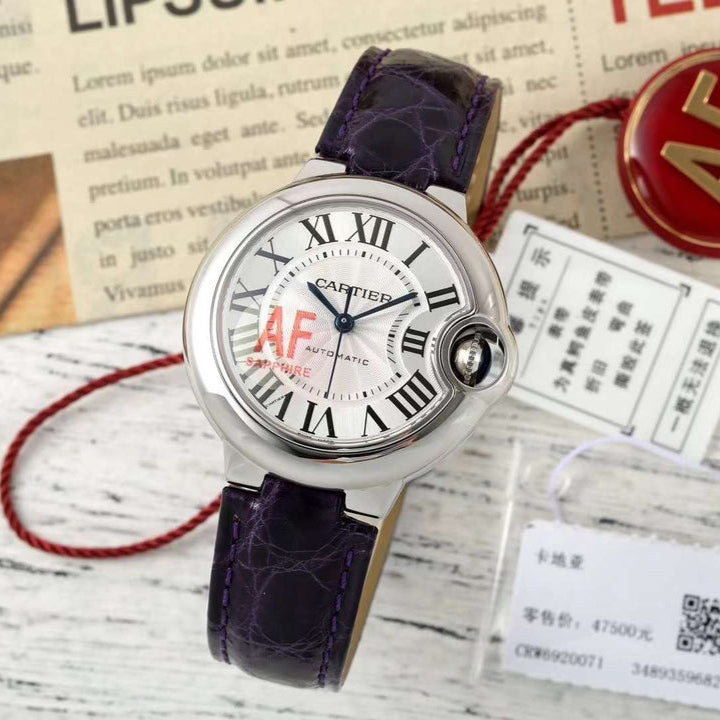BALLON BLEU DE CARTIER 33 MM WATCH SILVER CASE WITH MIDNIGHT PURPLE LEATHER STRAP