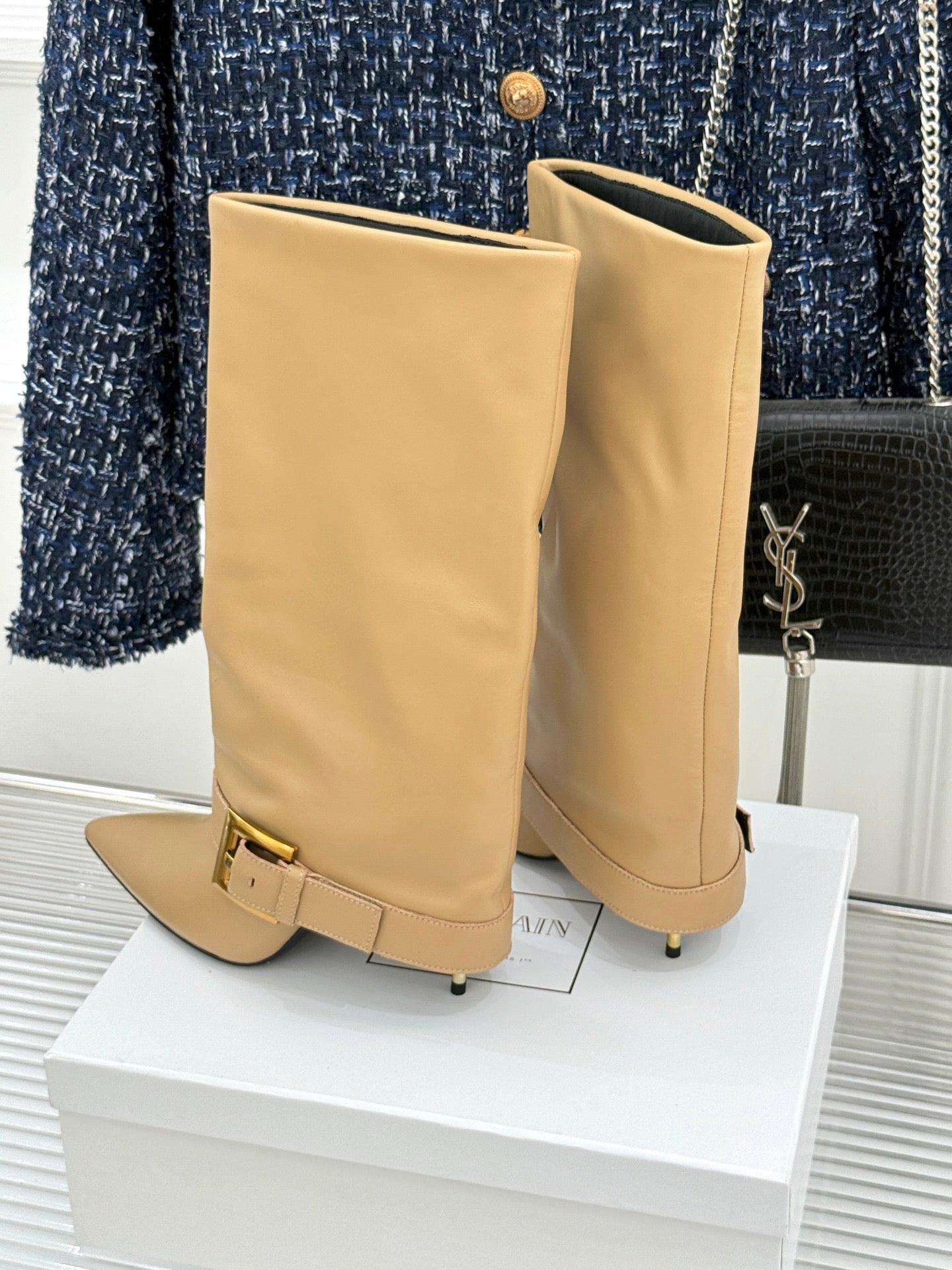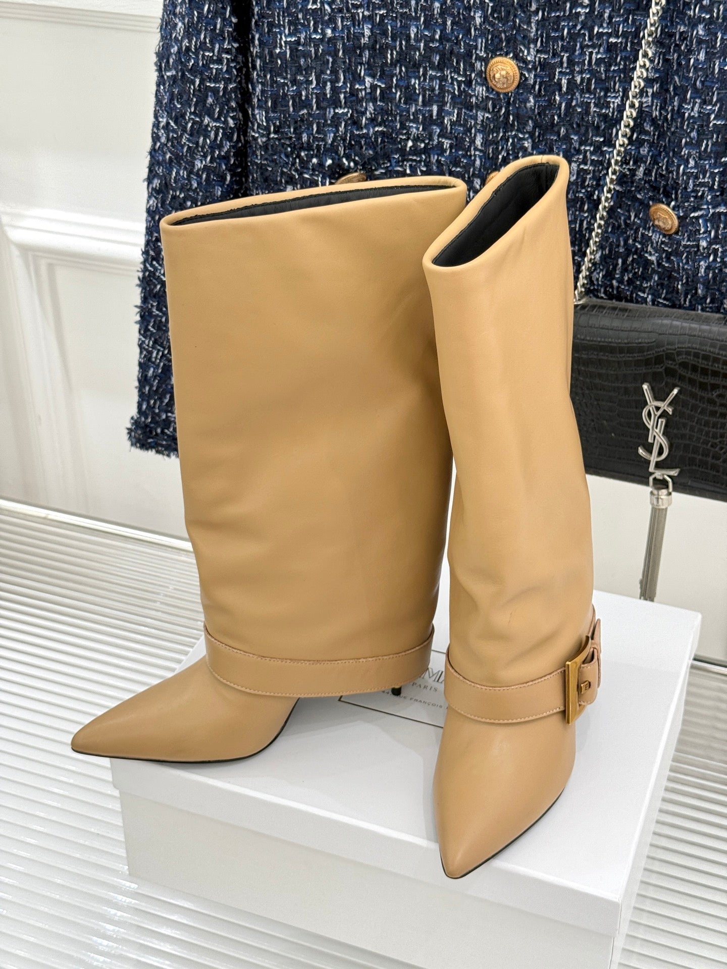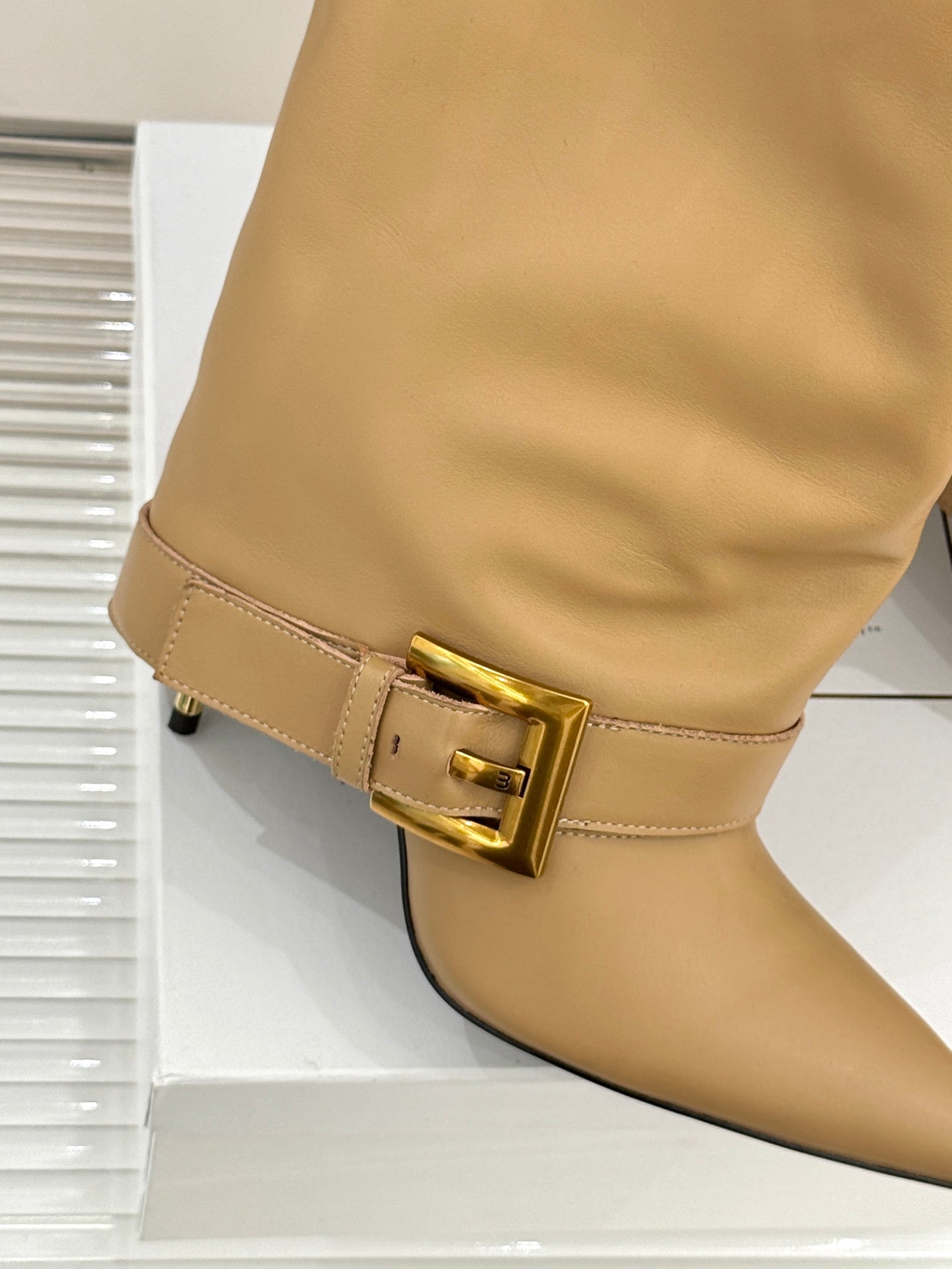 BALMAIN 25S ANTHEM BOOTS IN LIGHT CARAMEL CALFSKIN