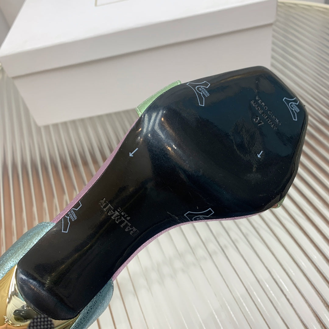 BALMAIN 25S B STRAP HIGH HEEL SANDALS 95MM IN MULTICOLOR CALFSKIN