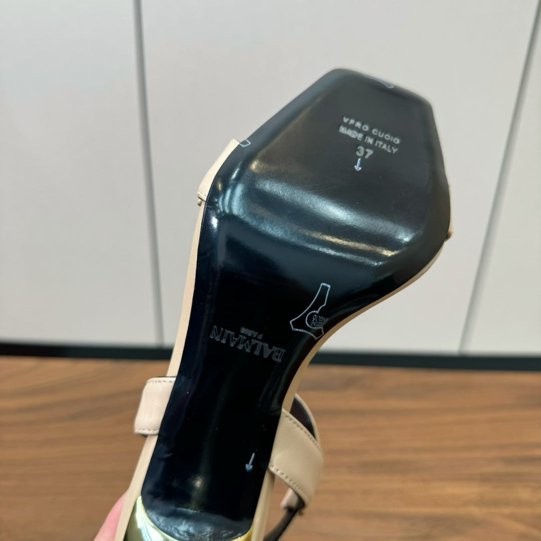 BALMAIN 25S HEELED EVA SANDALS 95MM IN BEIGE AND PINK CALFSKIN