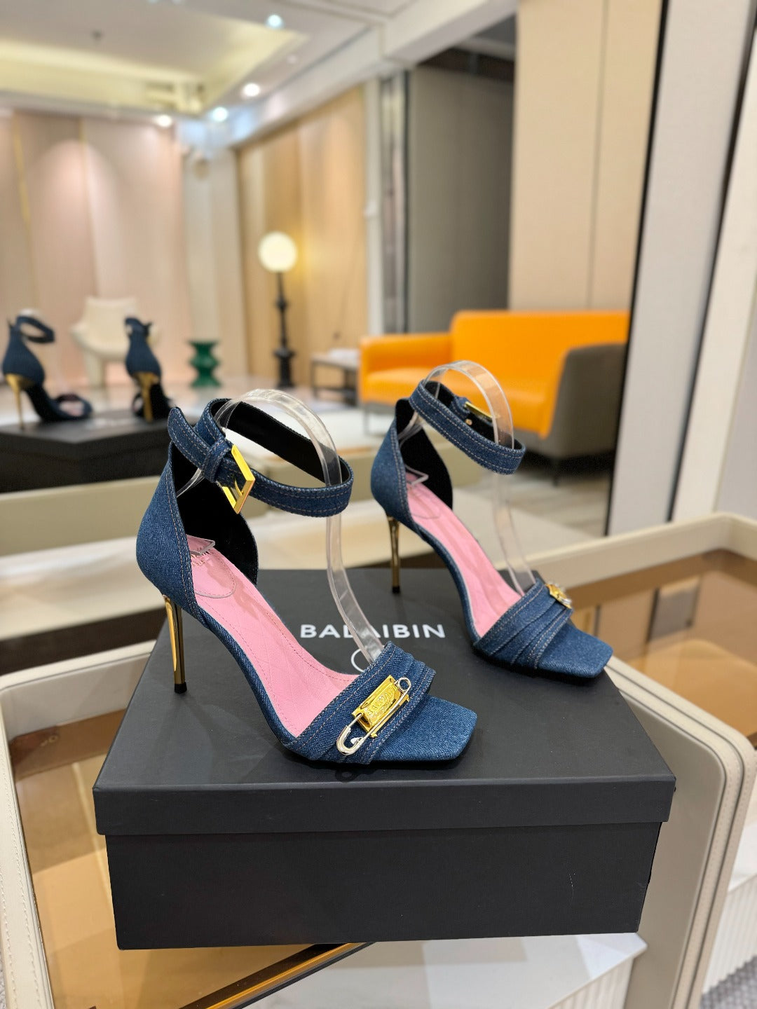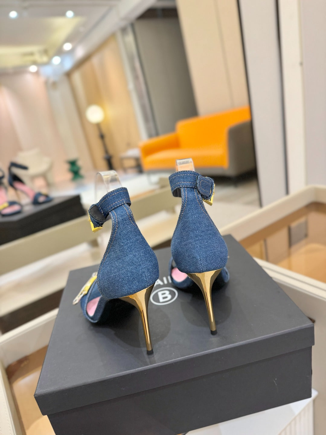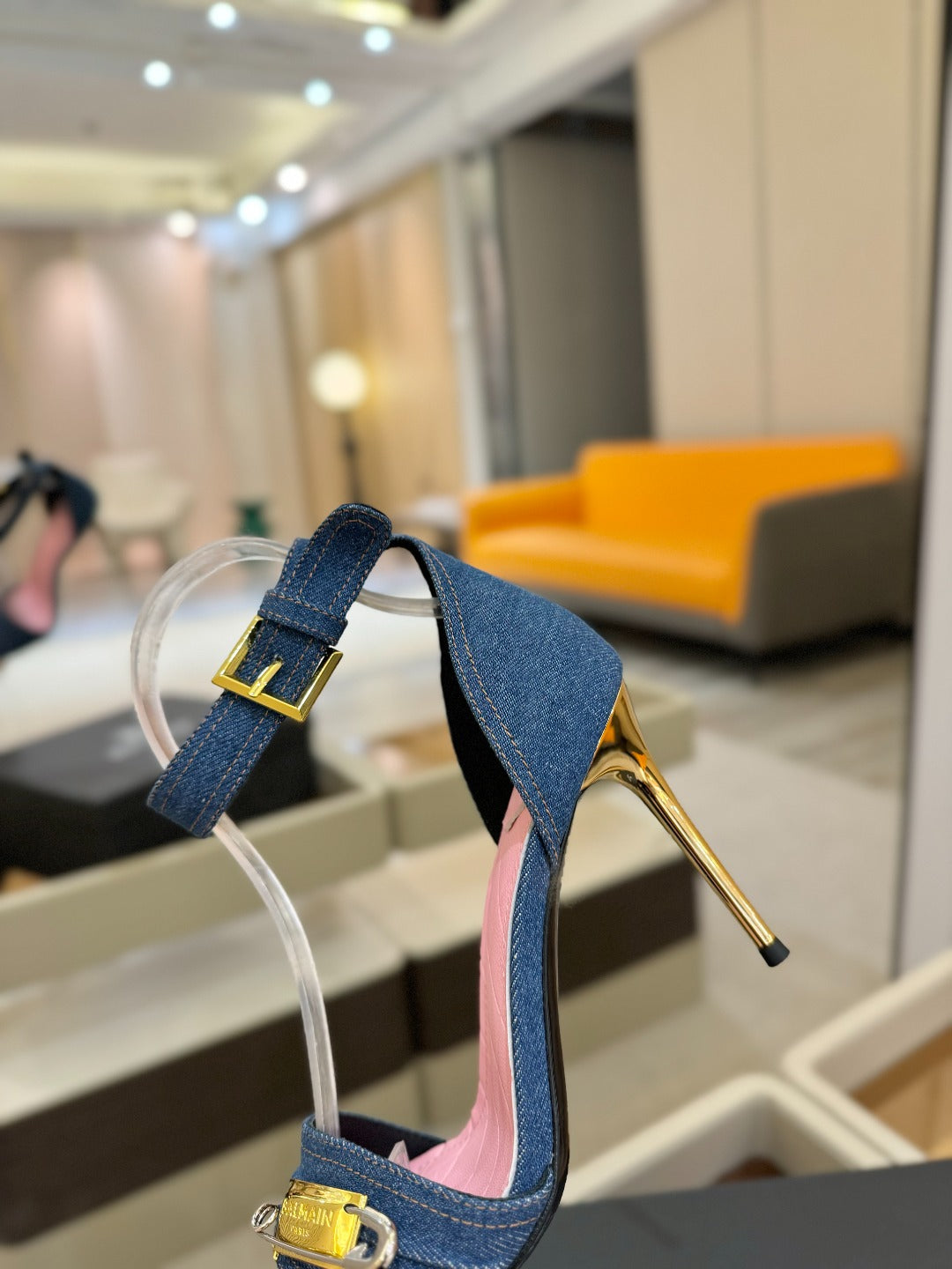 BALMAIN 25S HIGH HEELS 95MM IN BLUE DENIM