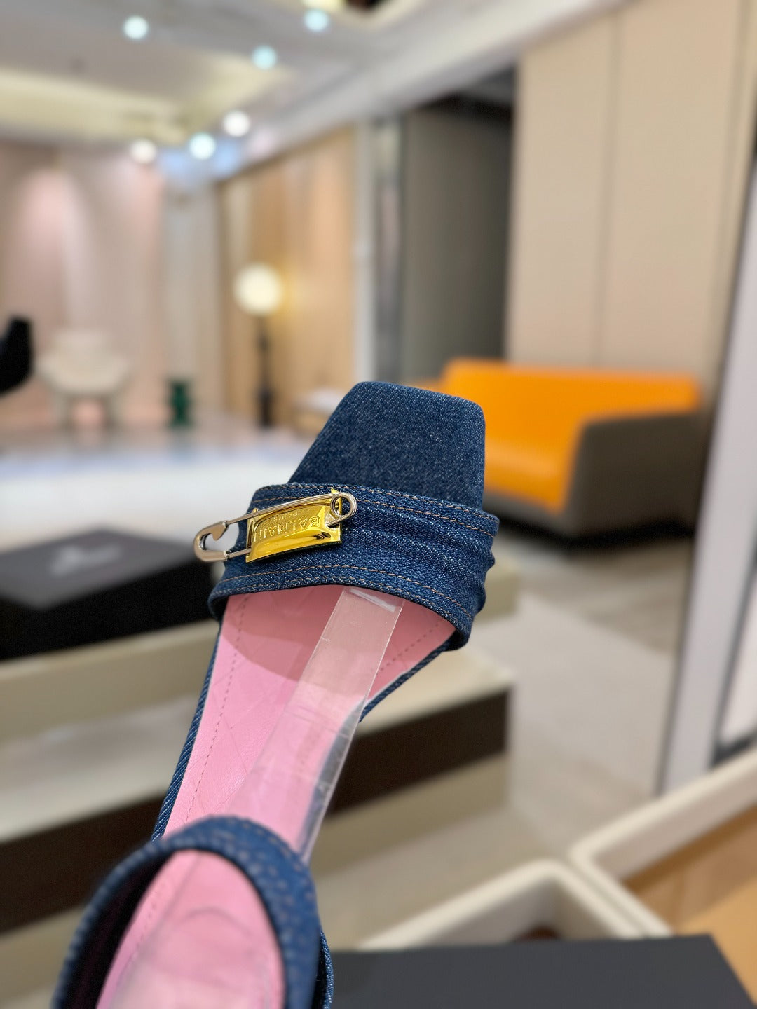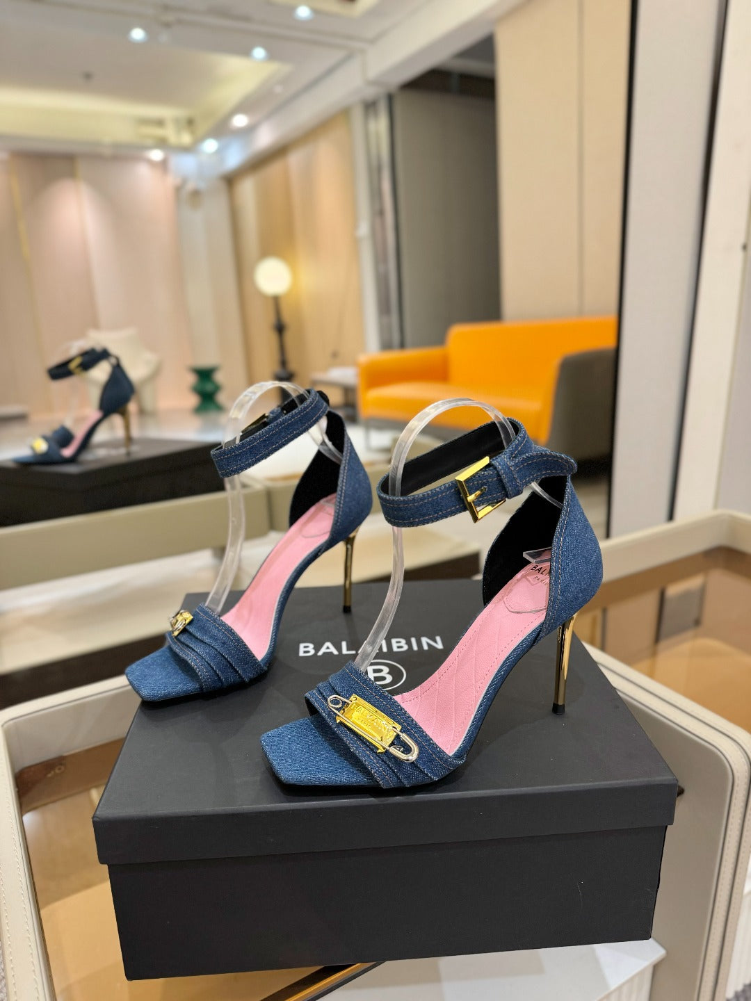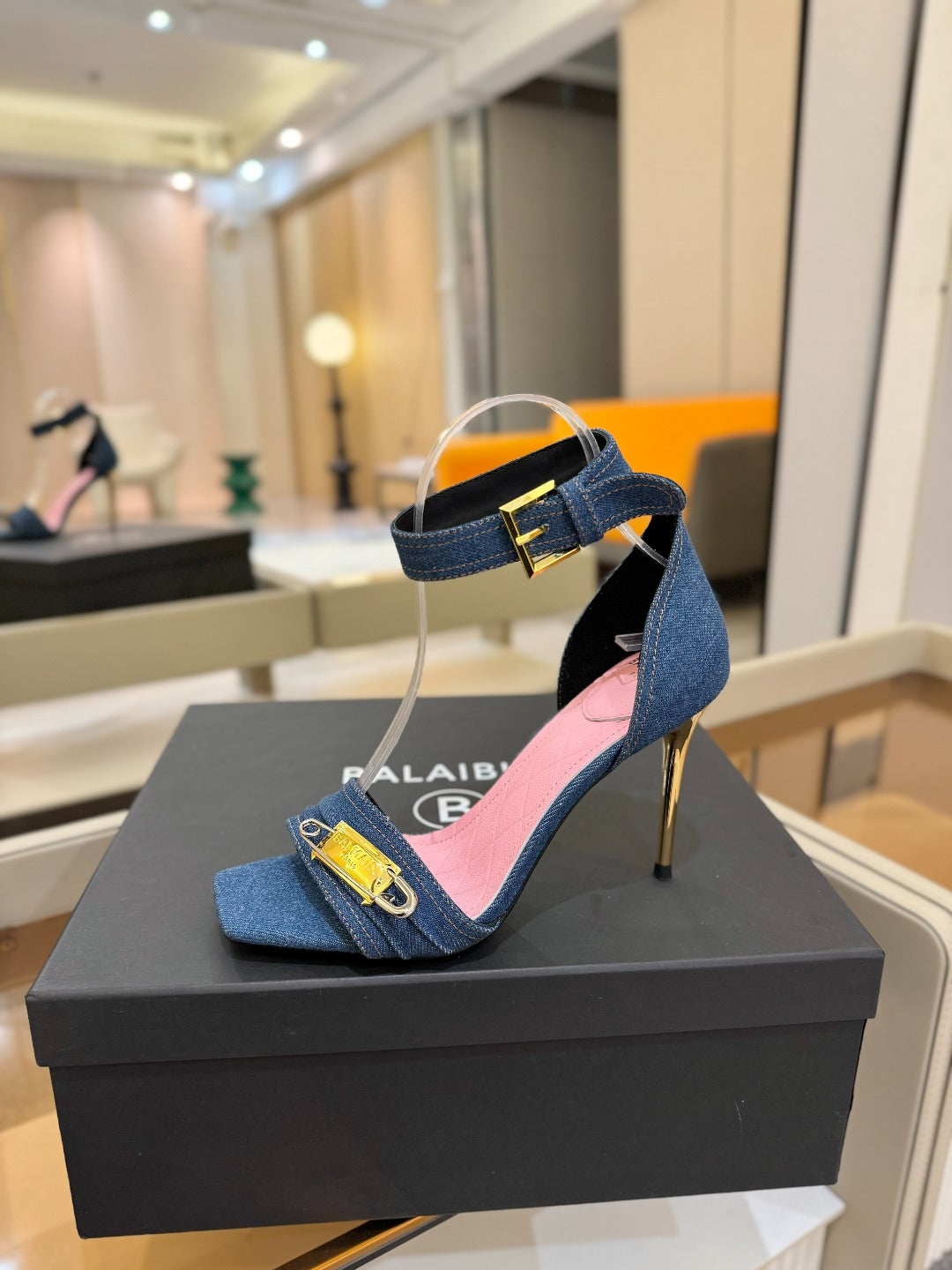 BALMAIN 25S HIGH HEELS 95MM IN BLUE DENIM