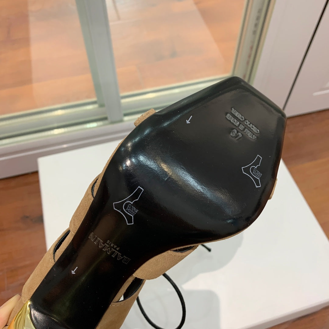 BALMAIN 25S HIGH HEELS 95MM IN LIGHT BROWN SUEDE WITH PEARL