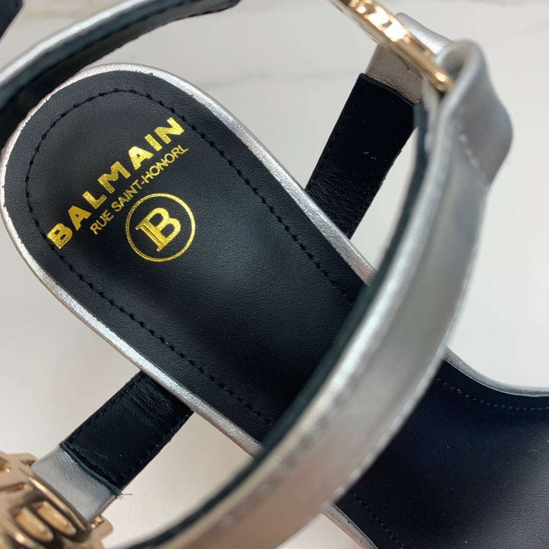 BALMAIN 25S HIGH HEELS WITH B METAL DETAIL 95MM IN SILVER CALFSKIN
