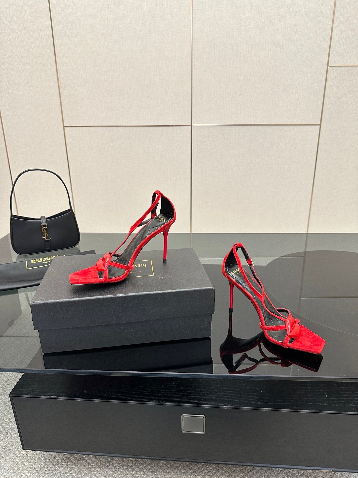 BALMAIN 25S LIPS SANDALS 10 IN CRIMSON RED SUEDE