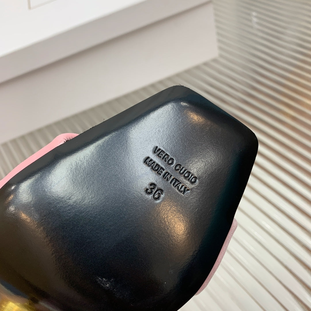 BALMAIN 25S MONETA HEELED SANDALS 95MM IN BABY PINK VELVET