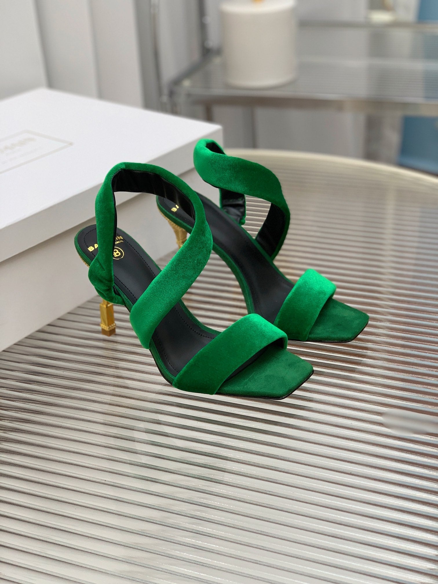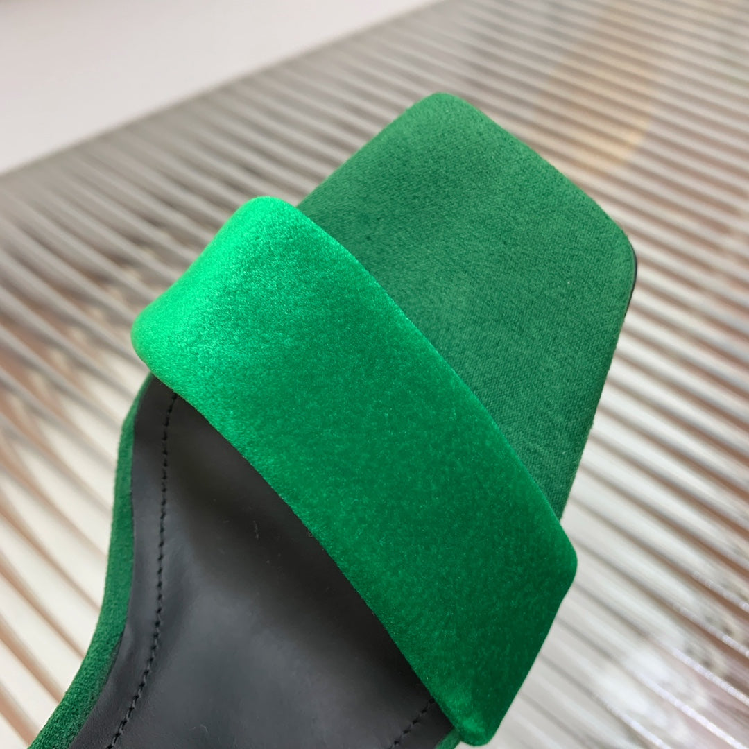 BALMAIN 25S MONETA HEELED SANDALS 95MM IN DARK GREEN VELVET
