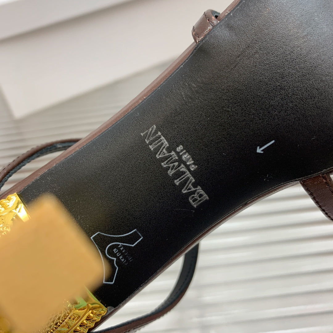 BALMAIN 25S MONETA SANDAL 95MM IN DARK BROWN CALFSKIN