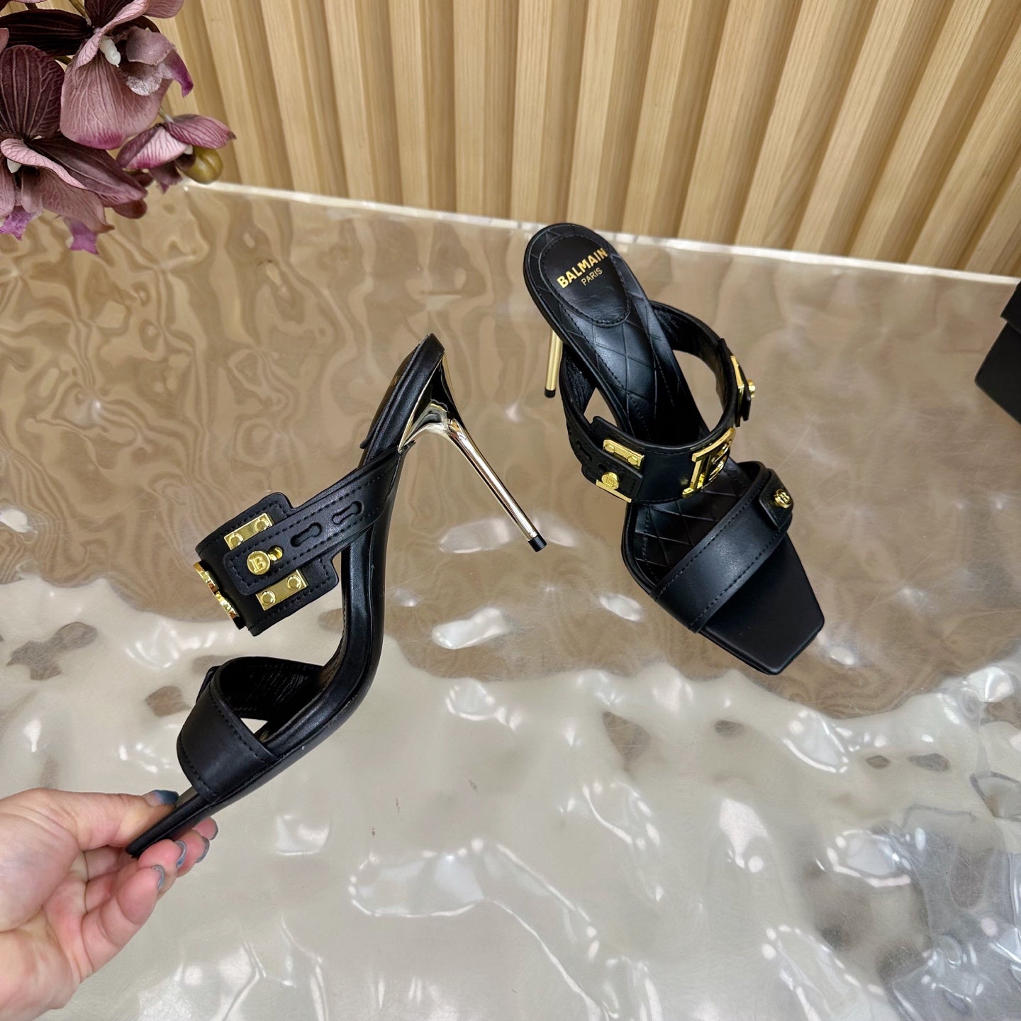 BALMAIN 25S MULES IN STRIPED LEATHER 95MM IN BLACK CALFSKIN GOLD HARDWARE
