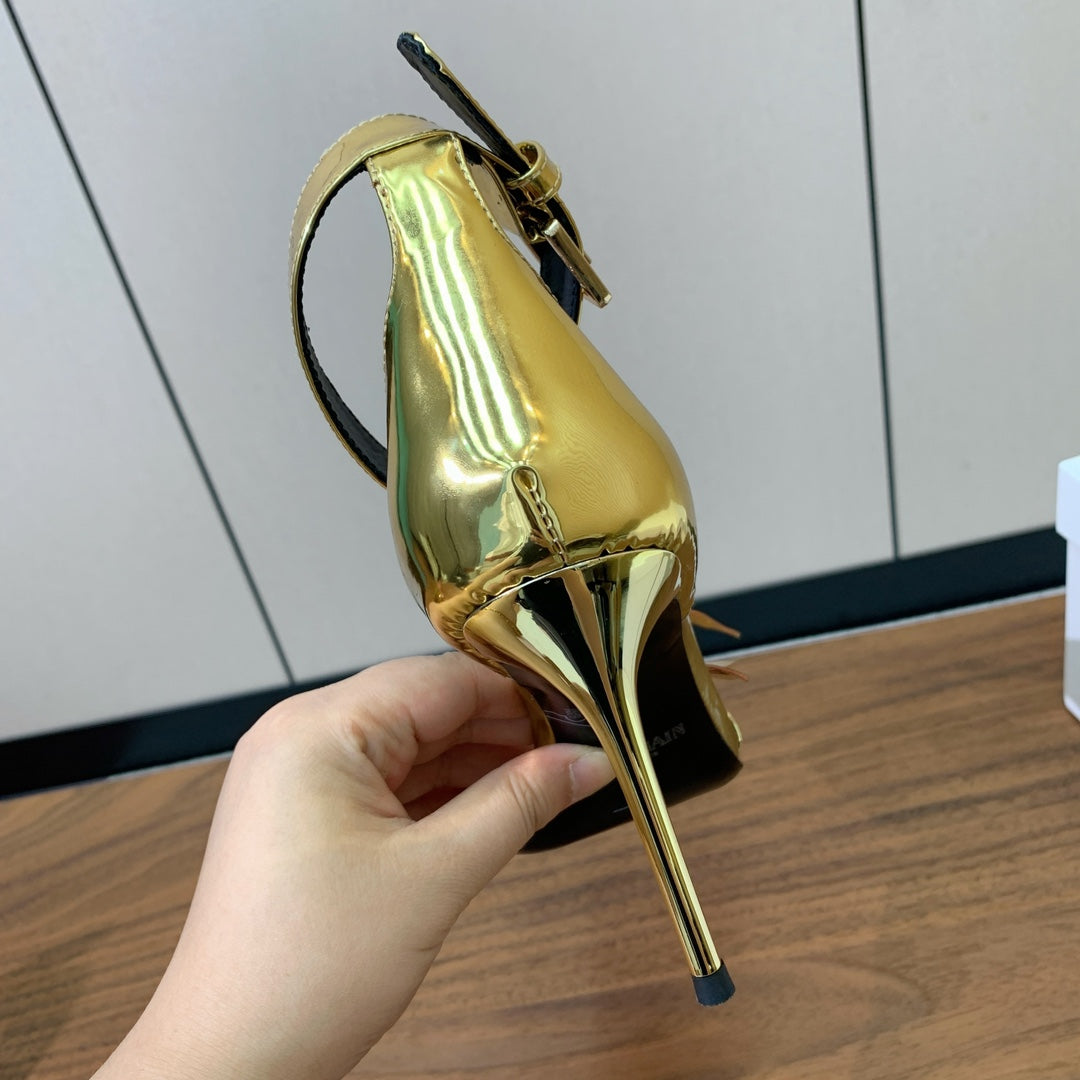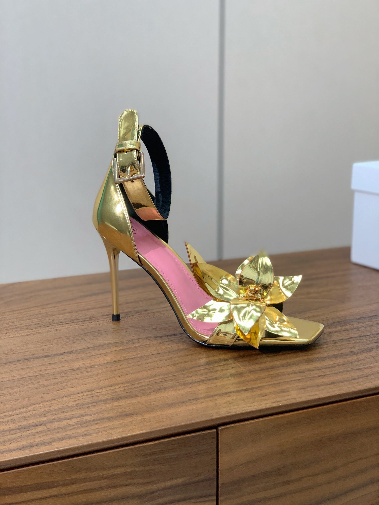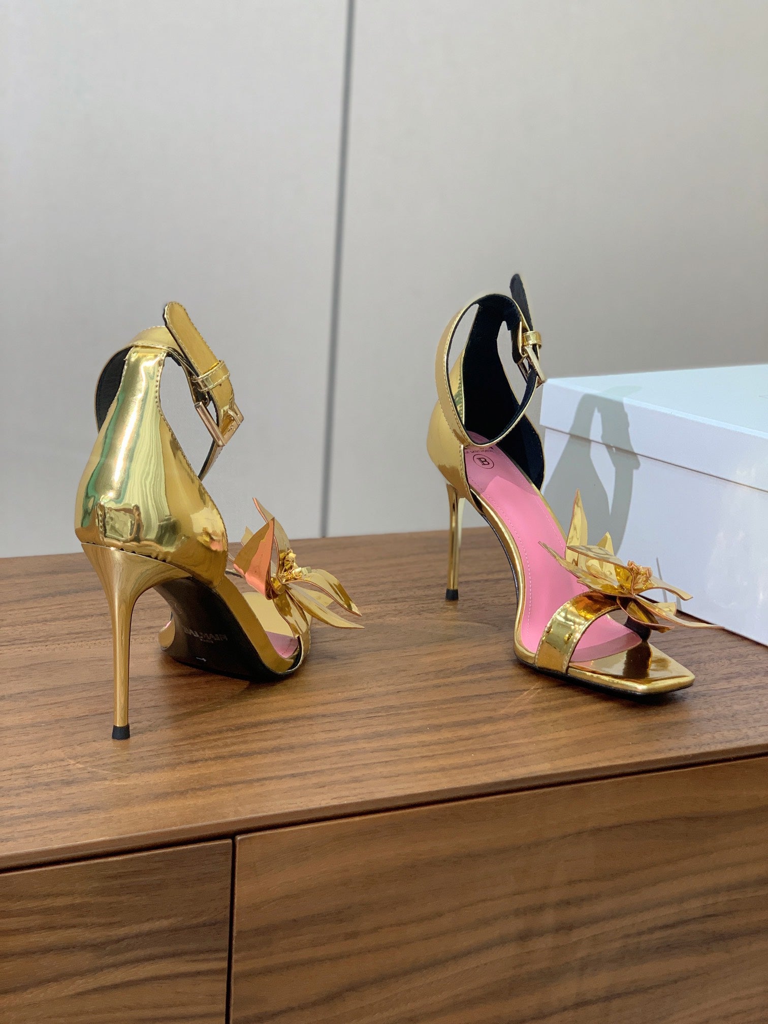 BALMAIN 25S RUBY GOLD HEELED SANDALS 95MM IN PATENT CALFSKIN