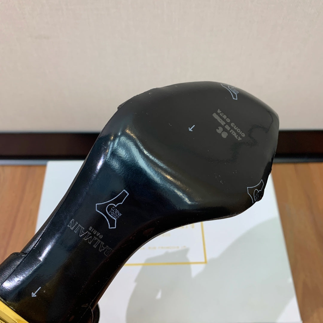 BALMAIN 25S SQUARE STRAP HIGH HEELS 100MM IN BLACK CALFSKIN
