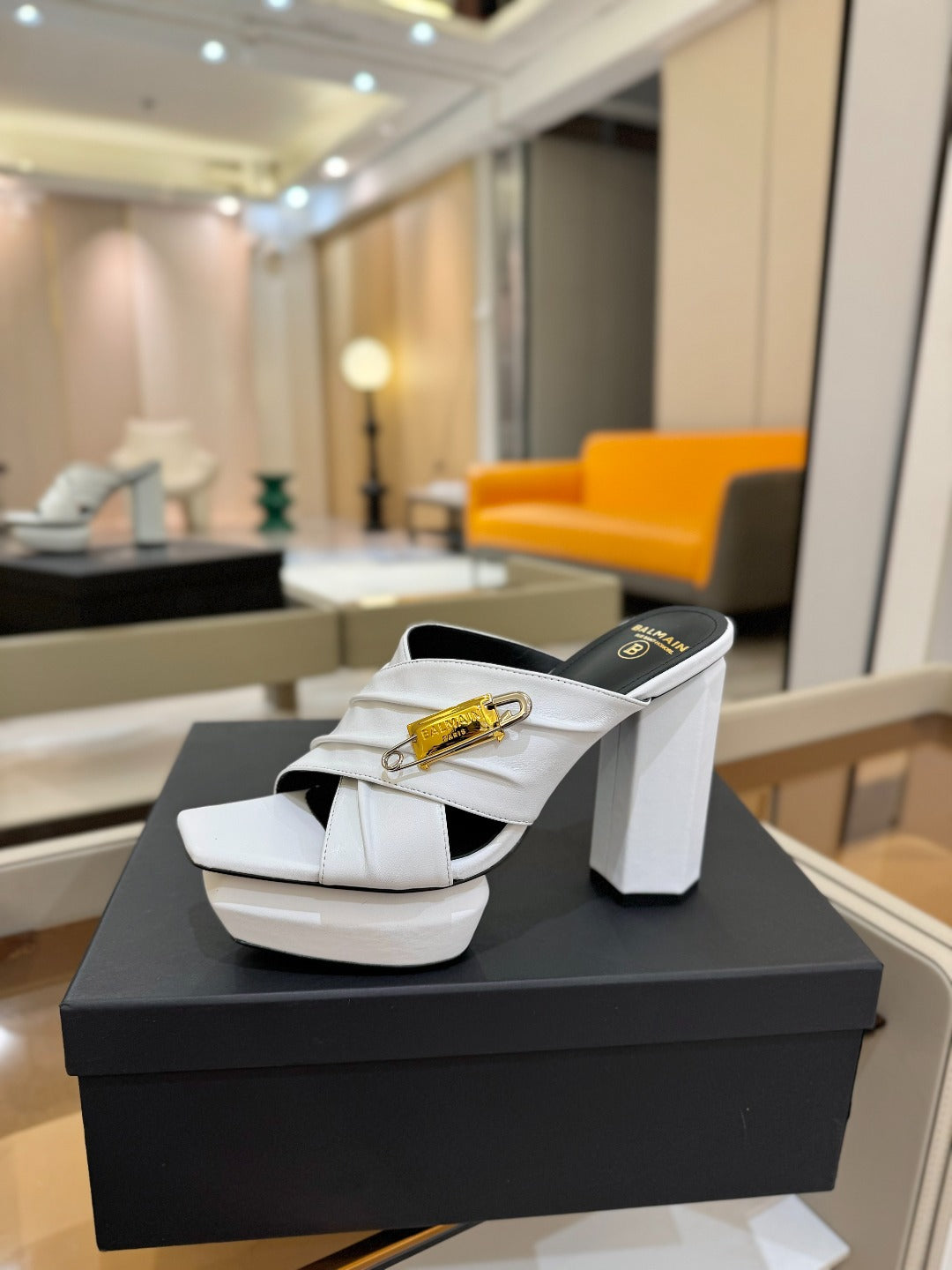 BALMAIN 25S WEDGE HEEL SANDALS 100MM IN WHITE CALFSKIN