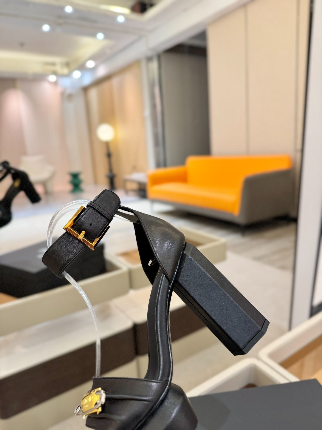 BALMAIN 25S WEDGE HEELS 100MM IN BLACK CALFSKIN
