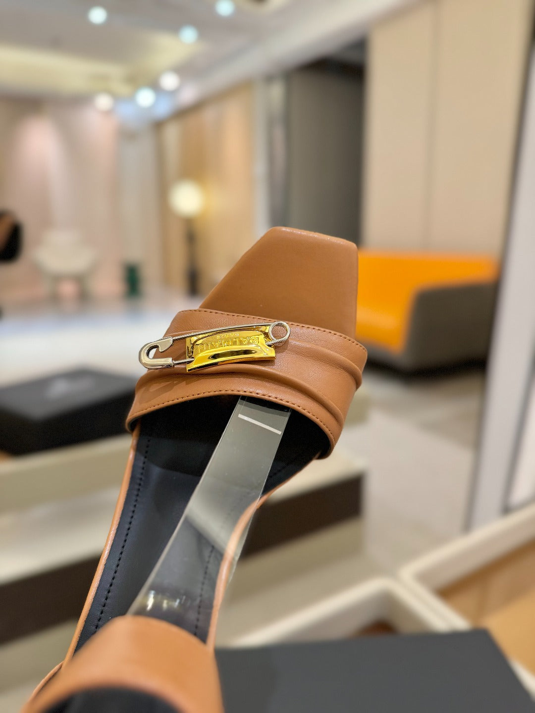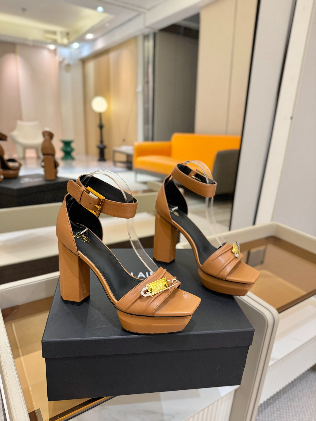 BALMAIN 25S WEDGE HEELS 100MM IN BROWN CALFSKIN