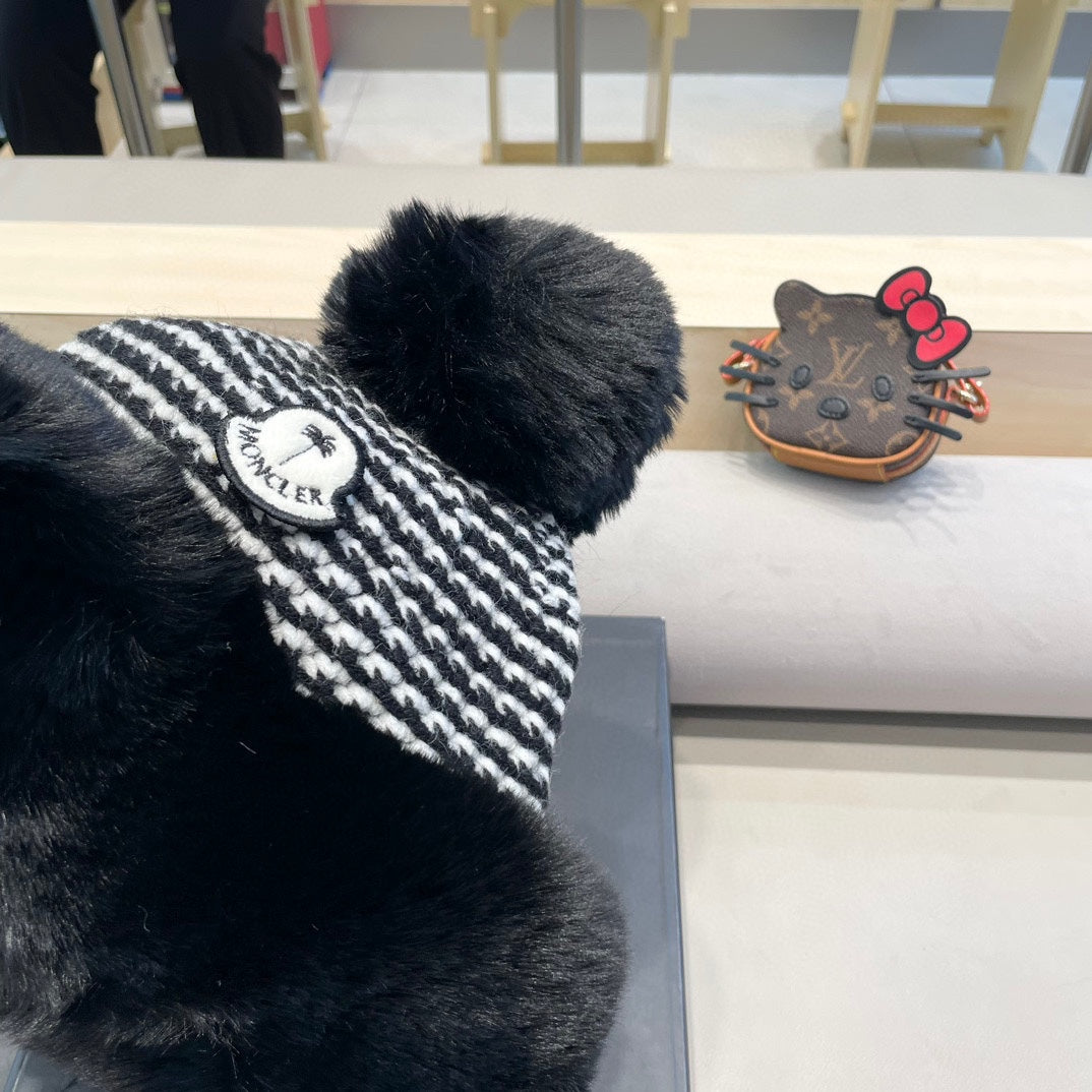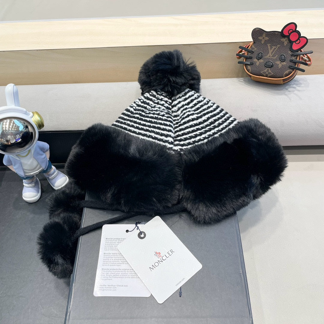 BEANIE HAT IN BLACK WOOL AND FLEECE 436748